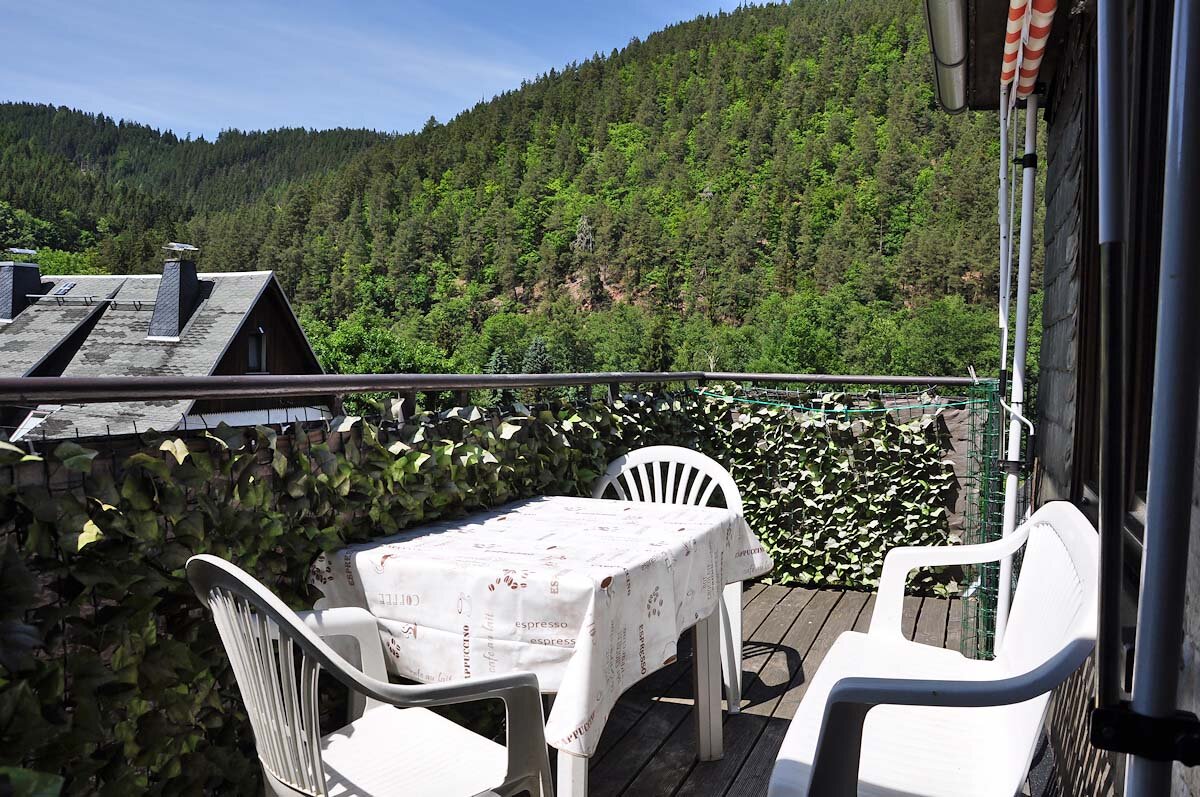 Vom Balkon haben Sie einen herrlichen Rundblick auf die Berge und Wälder.