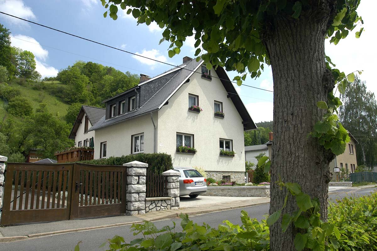 Döschnitz liegt eingebettet in Wiesenhänge und ausgedehnte Waldflächen. Durch den Ort fließt die malerische Sorbitz.