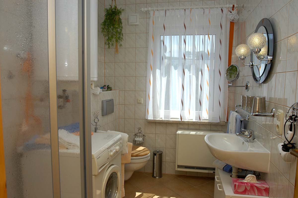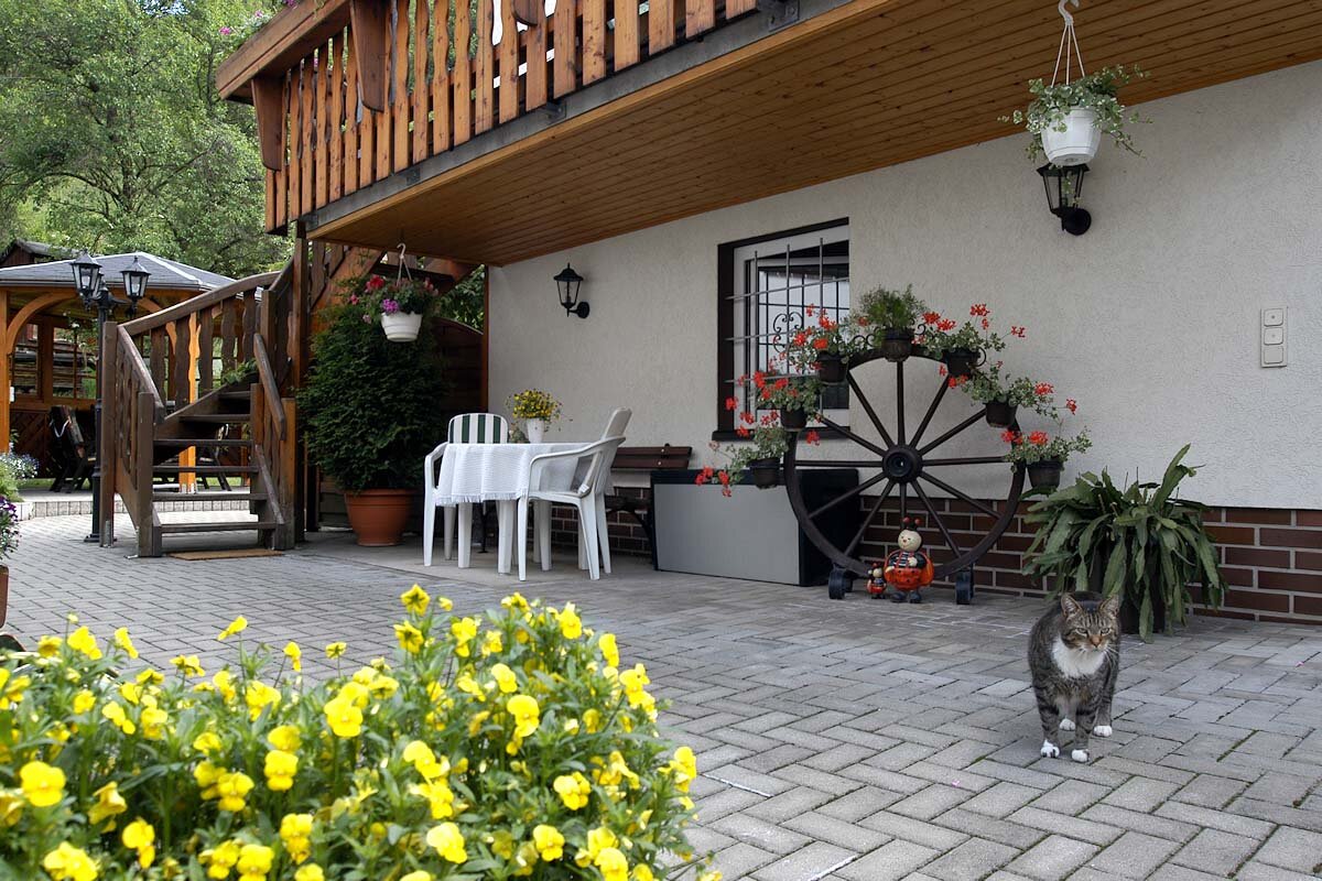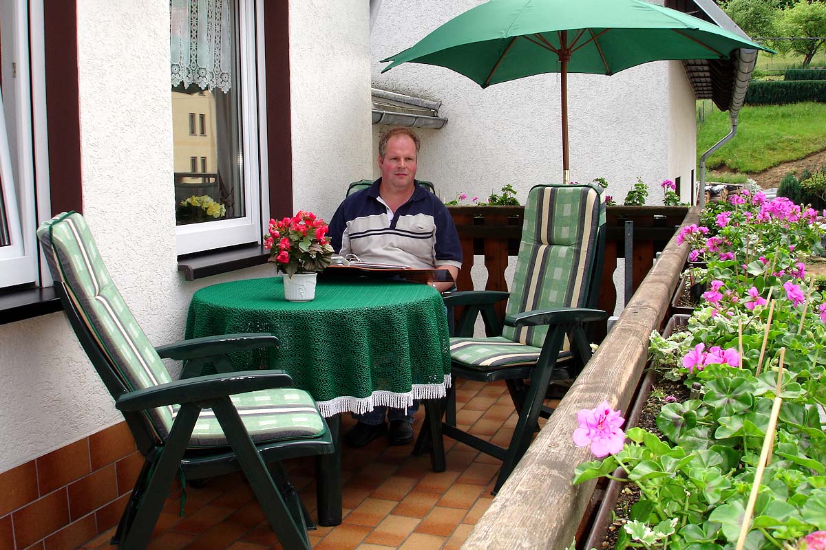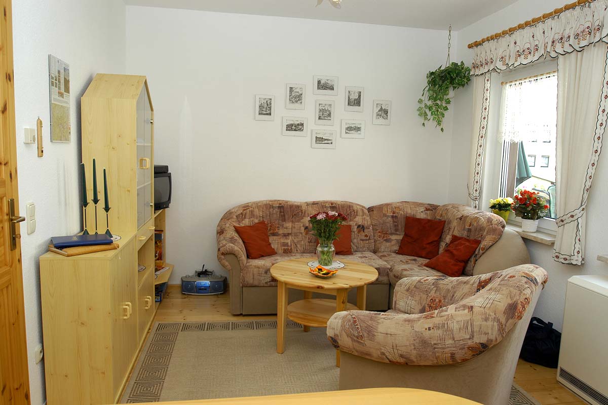 Die Ferienwohnung hat einen separaten Eingang und ist über eine Außentreppe und einen großen sonnigen Balkon zu erreichen. Die Wohnung ist freundlich und geschmackvoll im Landhausstil eingerichtet. SAT-TV, Radio, Telefon und WLAN sind vorhanden, ebenso einige Gesellschaftsspiele.
