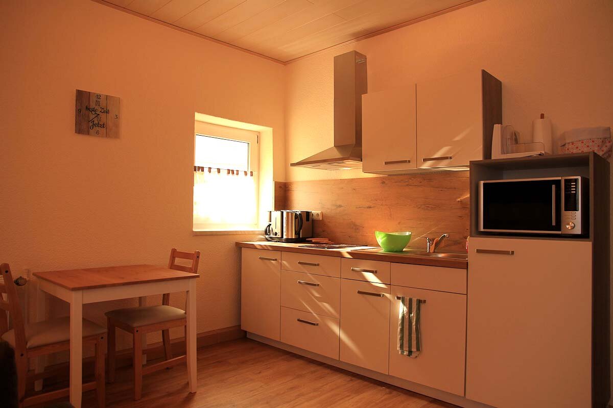 Die Ferienwohnung "Zimmerberg" befindet sich ebenfalls an unserem Wohnhaus und ist über einen separaten Eingang zugänglich. 2 Personen können hier bequem Urlaub machen. Auf dem ausziebaren Sofa kann eine 3. Person zusätzlich übernachten.