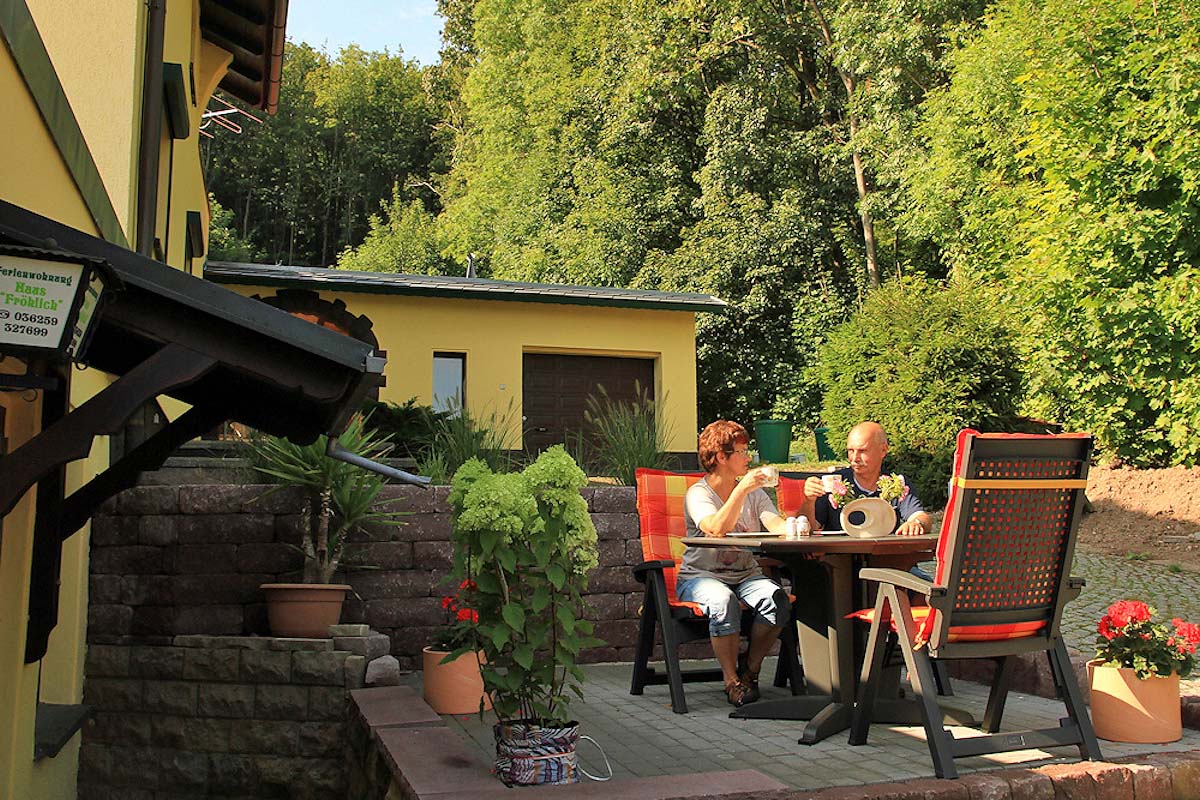Ein schöner Sitzbereich im Grünen lädt zum Verweilen ein.
