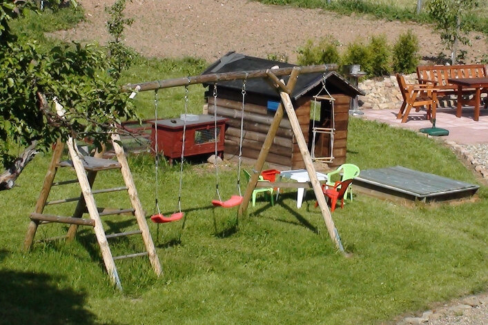 Neben einem zu jeder Fewo gehörenden Balkon bzw. Terrasse bietet unser großzügiges Aussengelände mit großem Garten und Spielplatz mehrere kleinere Sitzbereiche. Bei schönem Wetter lässt sich hier vor oder nach Ihren Tagesausflügen perfekt entspannen.
