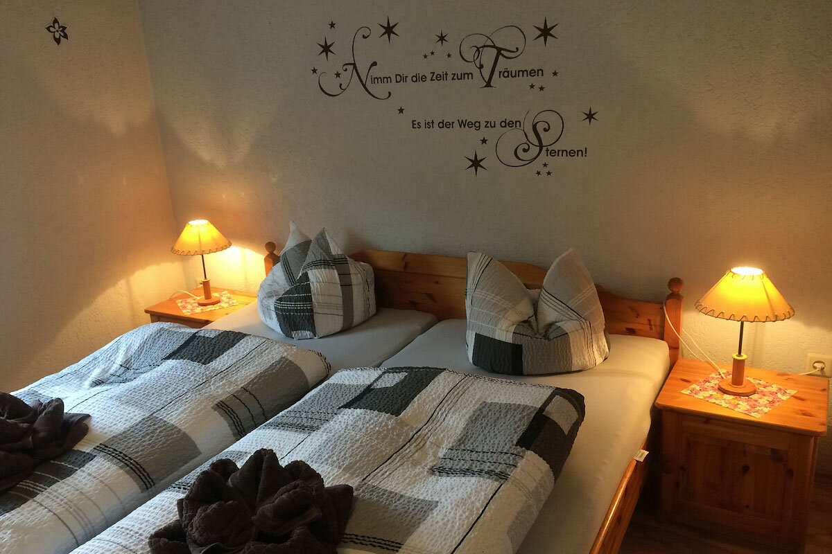 Im Gästehaus (Süd-West-Lage) befinden sich 3 komplett eingerichtete familienfreundliche Ferienwohnungen für jeweils 2 bis 4 Personen (zusätzliche Aufbettungen möglich). Eine der Wohnungen verfügt über einen Balkon und ist für 2 Personen (2 Aufbettungen) geeignet.