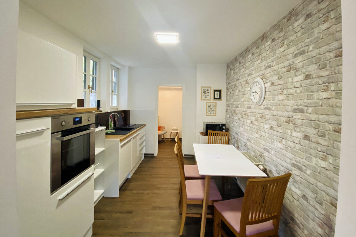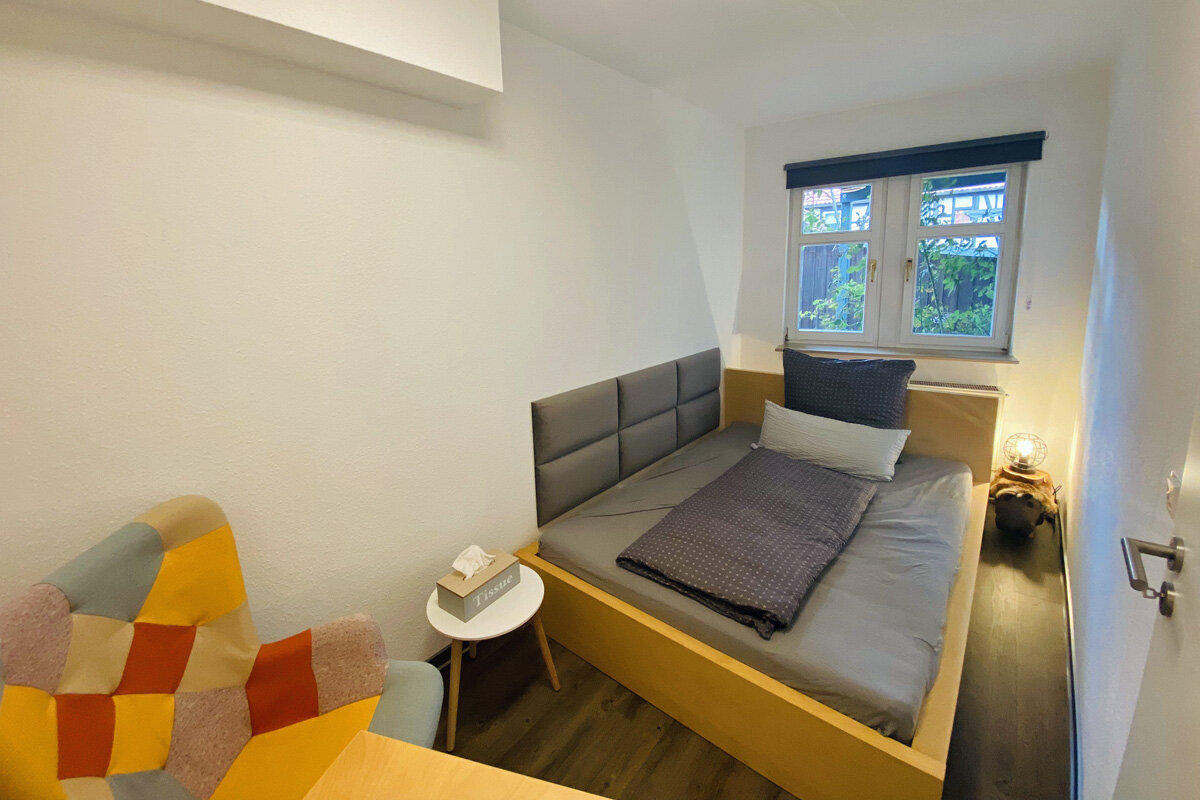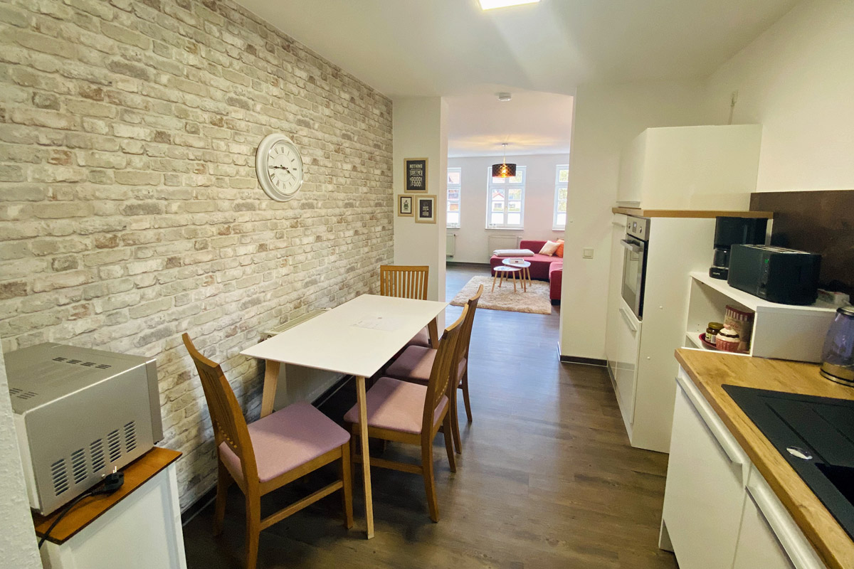 Die Ferienwohnung befindet sich direkt in der verkehrsberuhigten Zone des historischen Heinrichser Straßenmarktes von Suhl, umgeben von aufwändig restaurierten Fachwerkhäusern.