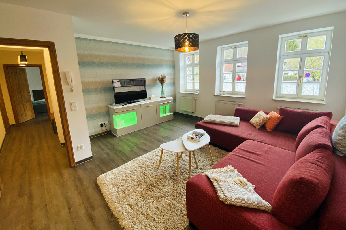 Die 70 m² Wohnung ist mit allem ausgestattet, was Sie für einen erholsamen Aufenthalt im südlichen Thüringer Wald benötigen.