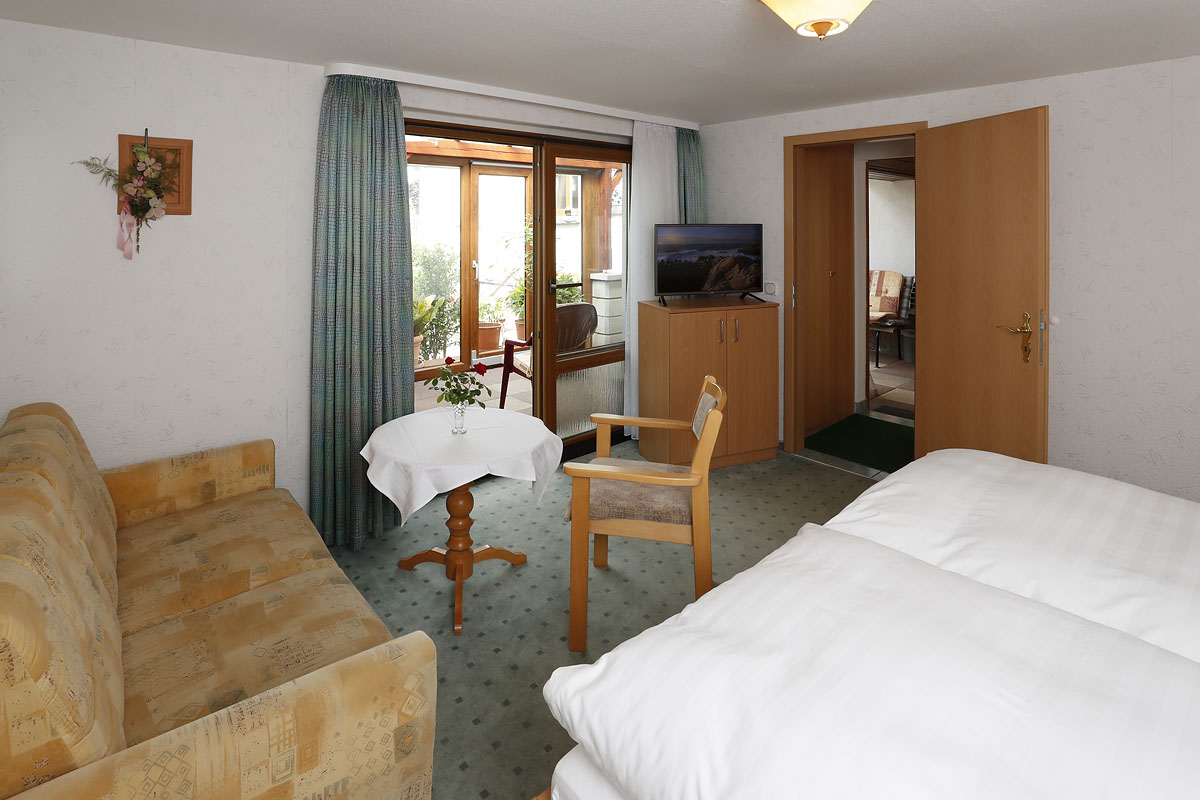 Sie können bei uns eine Ferienwohnung für 2 Personen (mit Aufbettung) und einer Mindestdauer von 2 Nächten buchen. Ein zusätzliches Gästezimmer zur Ferienwohnung ist möglich.