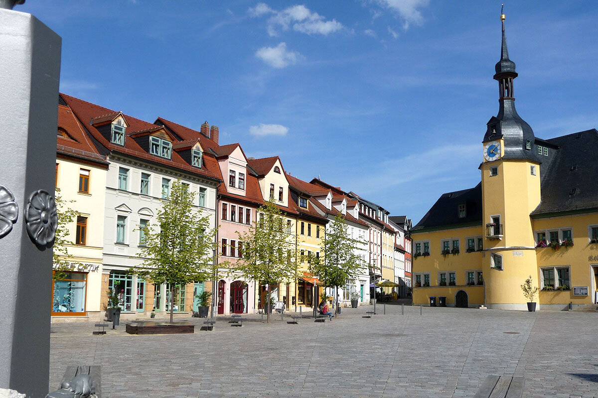 Ihre im ersten Obergeschoss liegende Ferienwohnung befindet sich in einem der ältesten Häuser im Herzen Apoldas, welches nach umfangreichen Sanierungsarbeiten in neuer Schönheit erstrahlt. Von hier genießen Sie einen schönen Blick auf das historische Rathaus Apoldas und das Marktgeschehen.