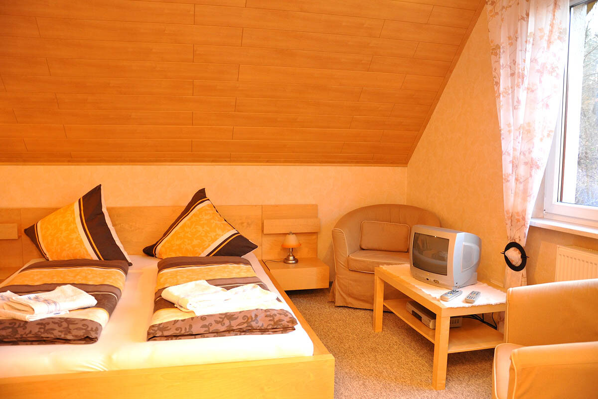 Für kulinarische Genüsse empfehlen wir Ihnen das in unserer unmittelbaren Nachbarschaft gelegene Hotel "Waldmühle" mit seiner vorzüglichen Küche, geprägt von original Thüringer Gerichten, sowie die Nutzung des Wellnessbereiches.