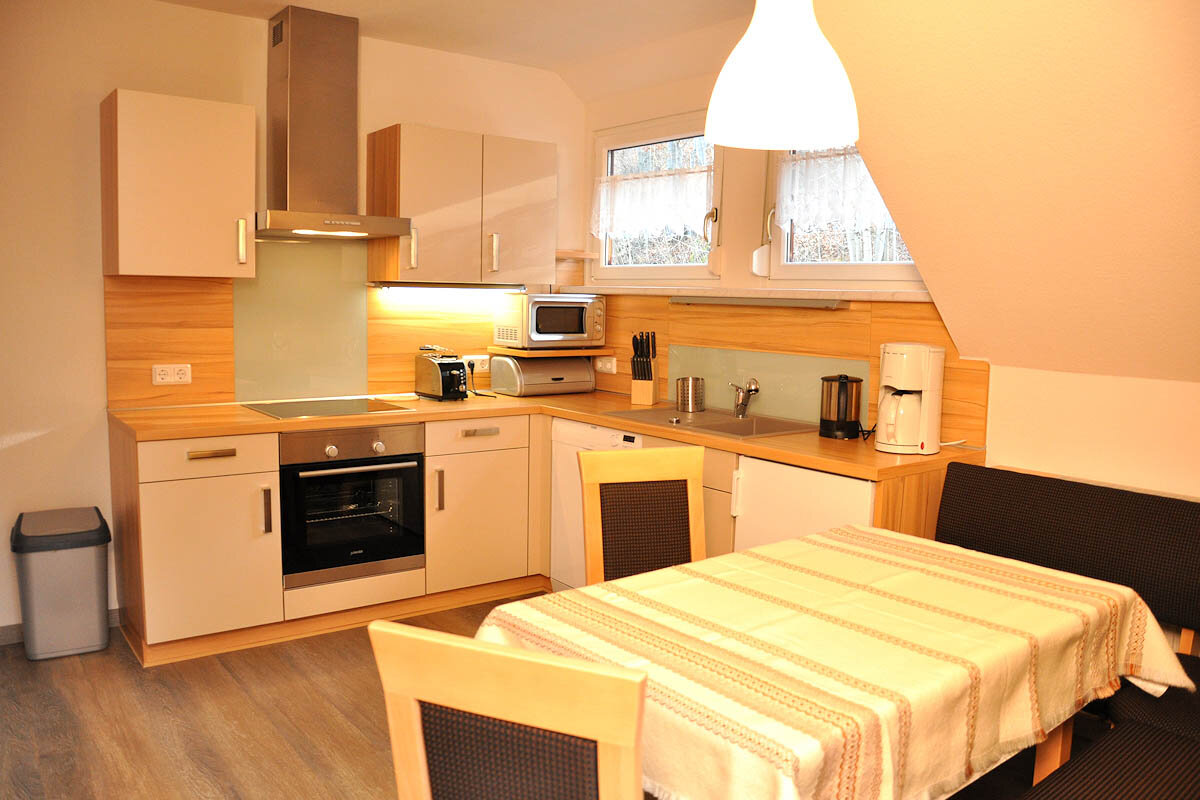 Zu unserer liebevoll eingerichteten Ferienwohnung gehört eine voll ausgestatte Küche, 2 Schlafzimmer mit Doppelbetten und Sat-TV, ein Bad mit Badewanne und Dusche, ein Balkon sowie 2 PKW-Stellplätze am Haus. Im Sommer können Sie sich in unserem Garten entspannen. Es besteht die Möglichkeit zum Grillen.