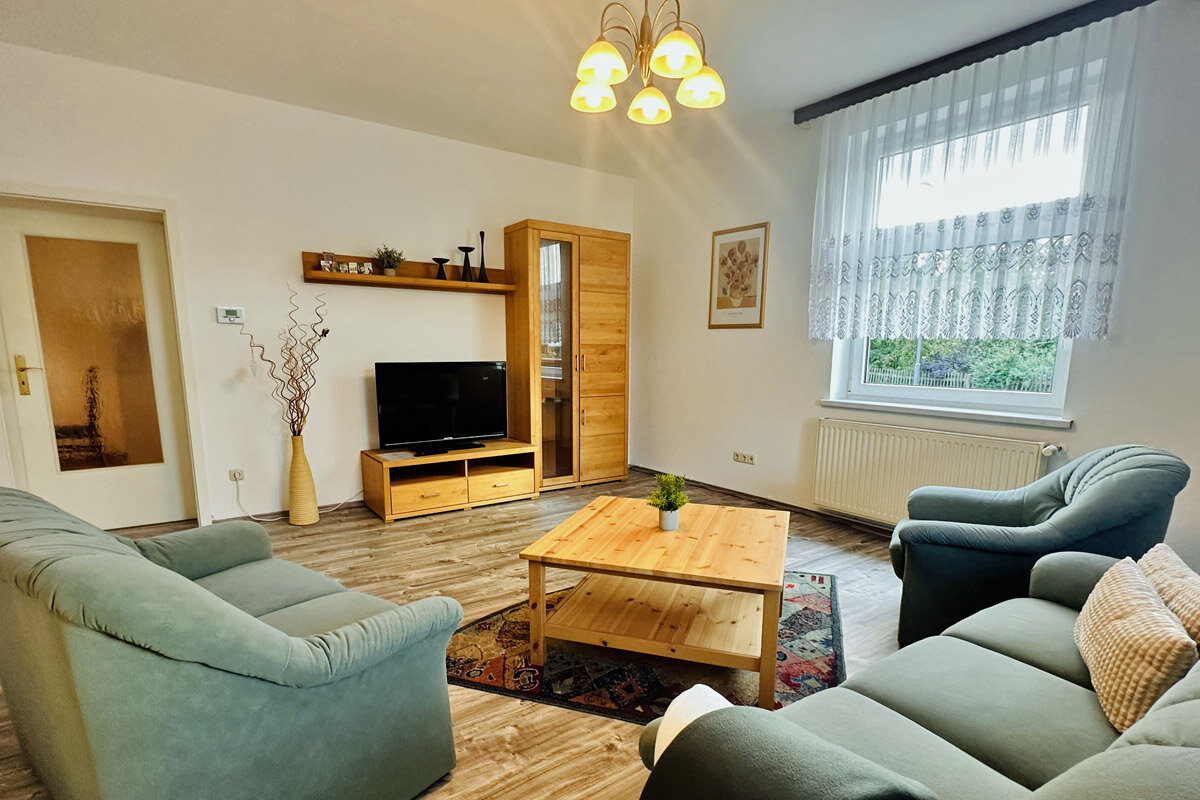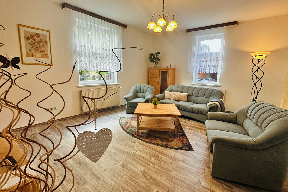 Unsere 110 m² Nichtraucher-Ferienwohnung befindet sich in einem ruhigen Wohngebiet und ist nur 10 Autominuten von Ilmenau entfernt.