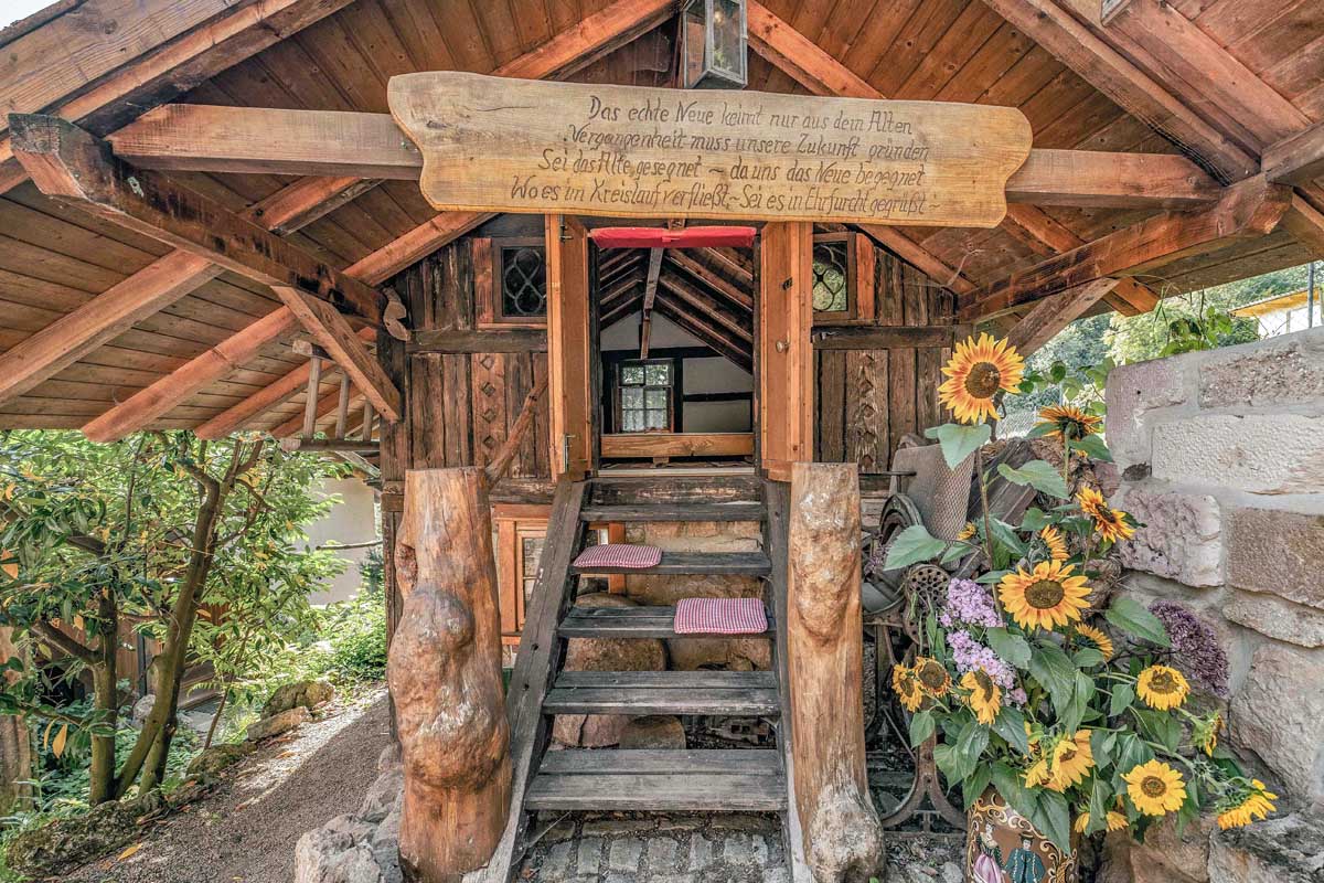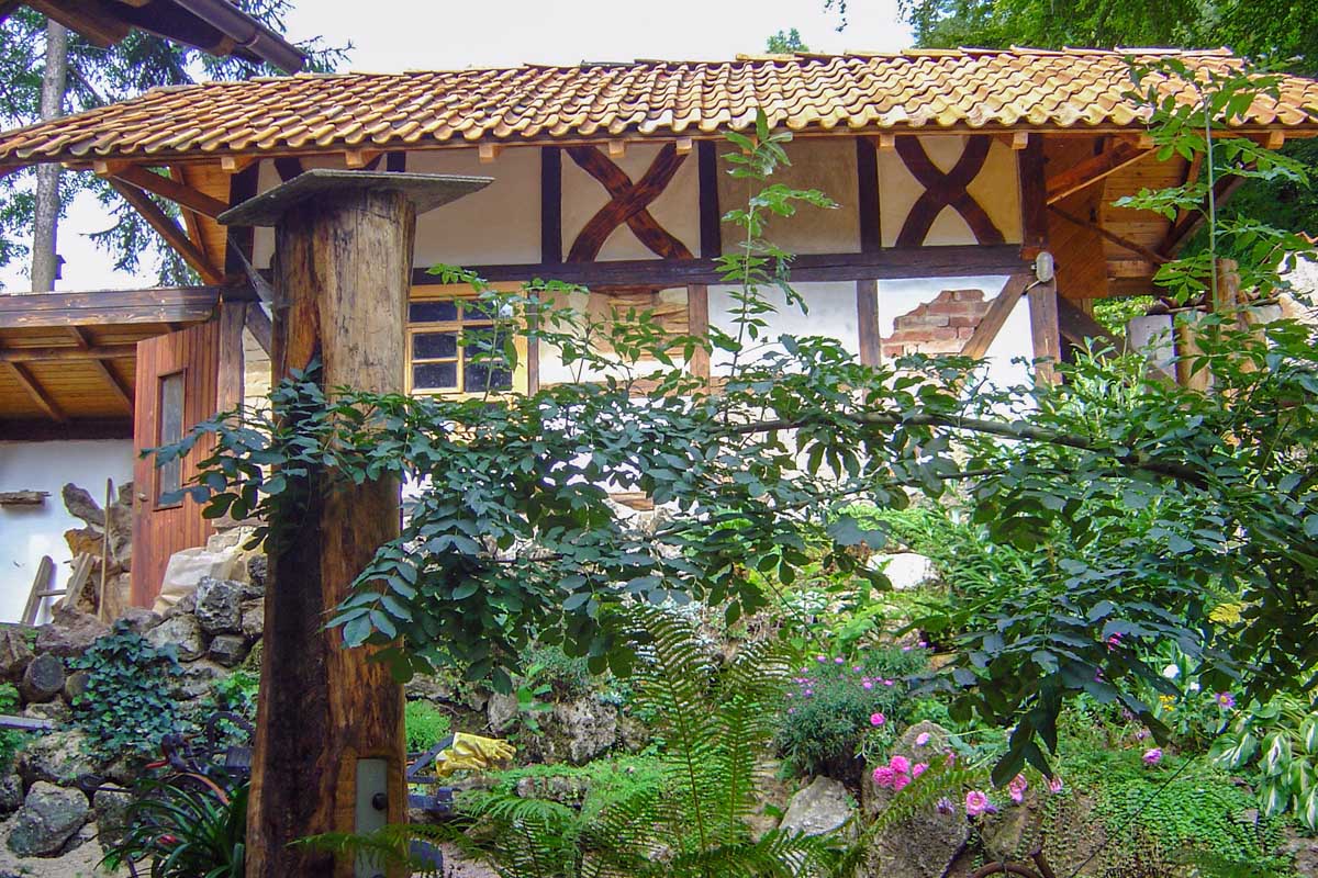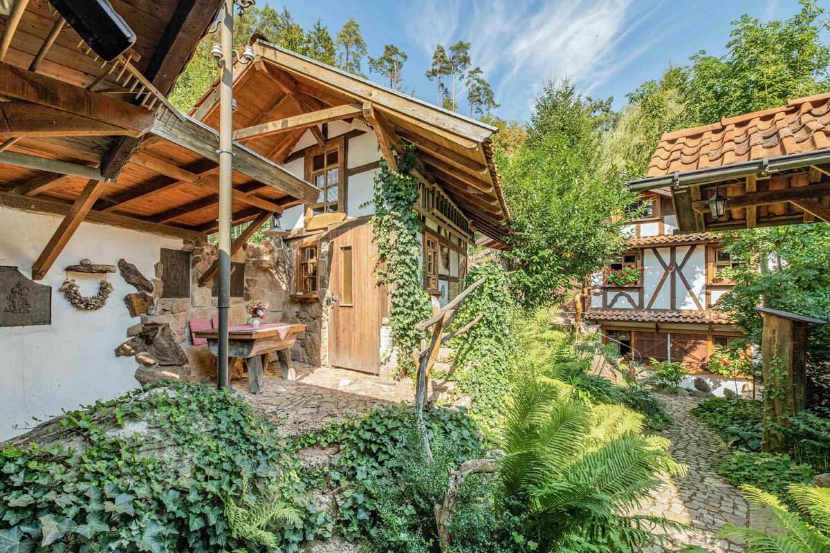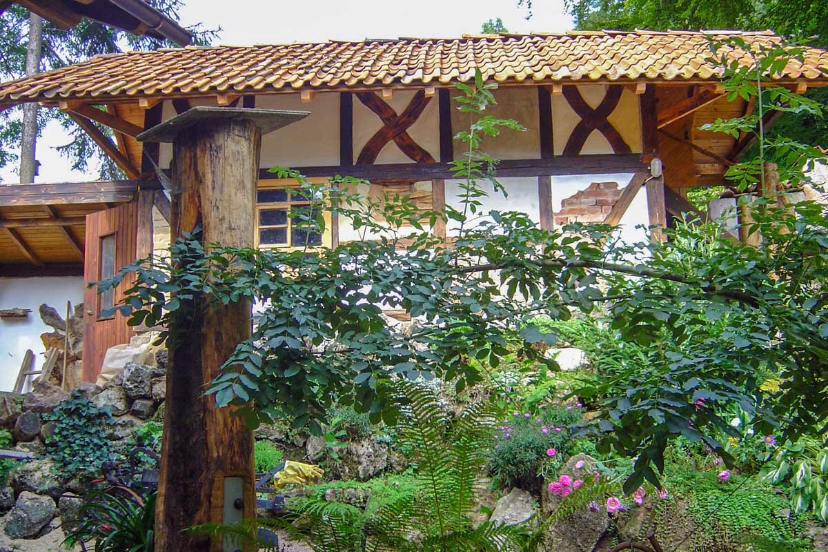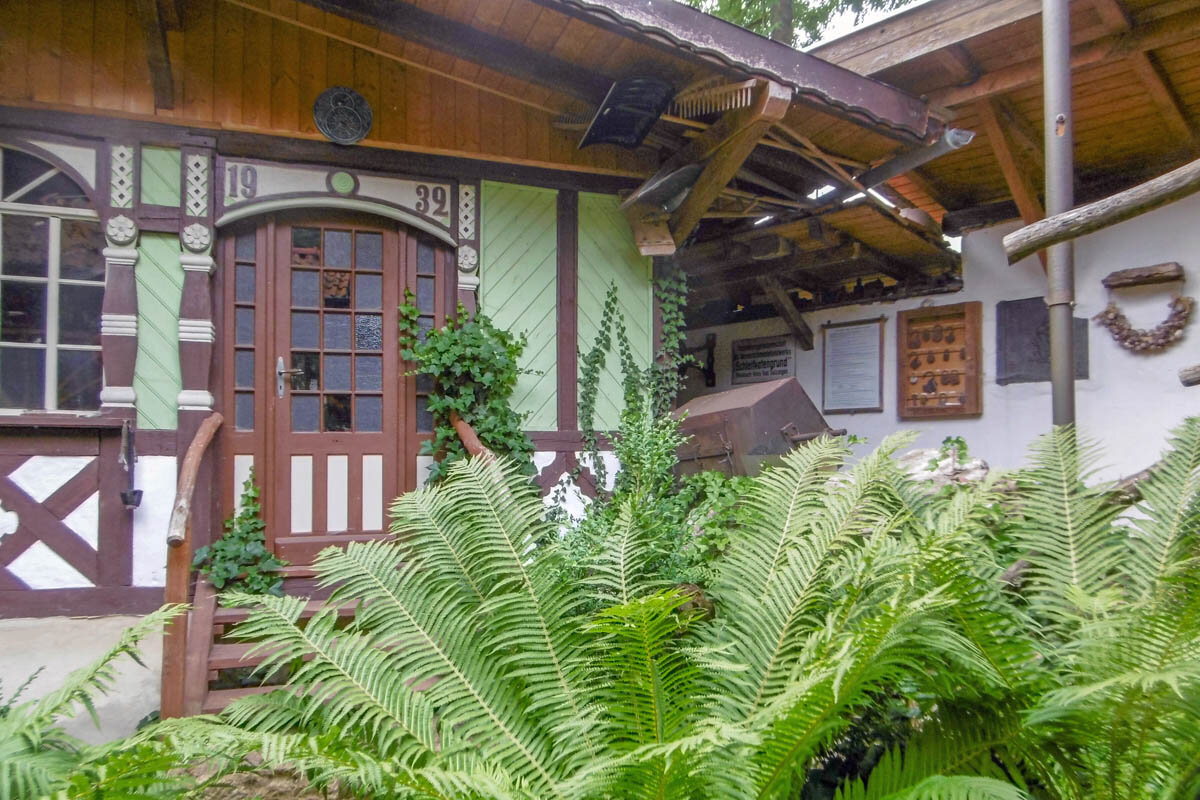 Der Garten bietet Sitzecken in versteckten Nischen, eine alte Schmiede, einen Räuberkeller mit mittelalterlicher Schwarzküche (Partyraum), die Nachbildung der "Rotunde" aus dem Altensteiner Park, einen Bergwerksstollen und einen Kinderspielplatz mit Baumhaus. Bei uns können Sie sogar den Rennsteig mit Mailerstätte und Höhle in Miniatur erkunden.
