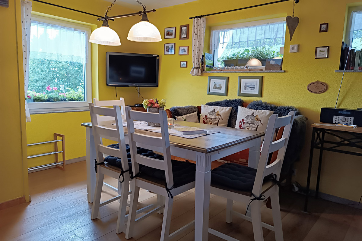 Specials: Hochbeete mit frischen Kräutern zur Selbstbedienung auf der Terrasse, Feuerschale mit Grill, Feuerzangenbowle, kleine Bibliothek, Spielesammlung, Wanderliteratur vorhanden, je FH ein Paar Walkingstöcke & ein Fernglas, Pilzgebiet in der Nähe, Kräuterbiotope, Wildbeobachtung