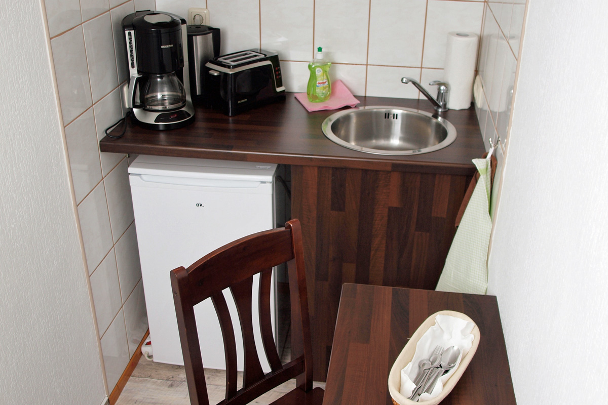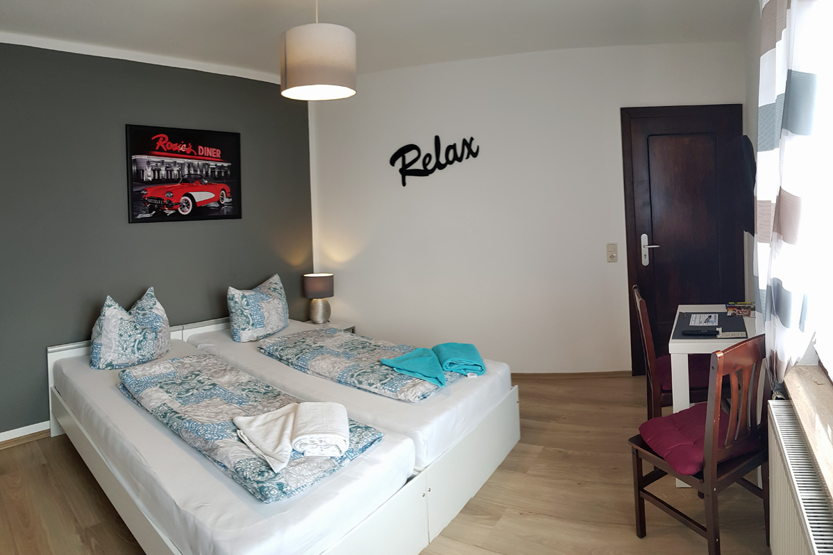 Die Wohnungen sind modern eingerichtet mit TV und Internet und bieten bis zu 8 Personen eine Übernachtungsmöglichkeit. In einem der beiden Zimmer befindet sich eine kleine Küche (Kühlschrank, Kaffeemaschiene, Toaster, Wasserkocher, Geschirr und Besteck), so dass auch eine Nutzung als Ferienwohnung möglich ist.