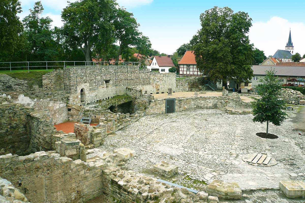 Von dem einstmaligen Herbslebener Schloss mit seinem Wallgraben sind nur noch Reste vorhanden. Es wurde bedauerlicherweise 1958 abgerissen. Seit 2000 finden auf diesem Gelände jedoch umfangreiche Freilegungsarbeiten statt. Heute sind Teile des Mauerwerkes aus dem 13. – 17. Jahrhundert sowie Keller, Verliese und die freigelegte Schlossbrücke wieder zu besichtigen.