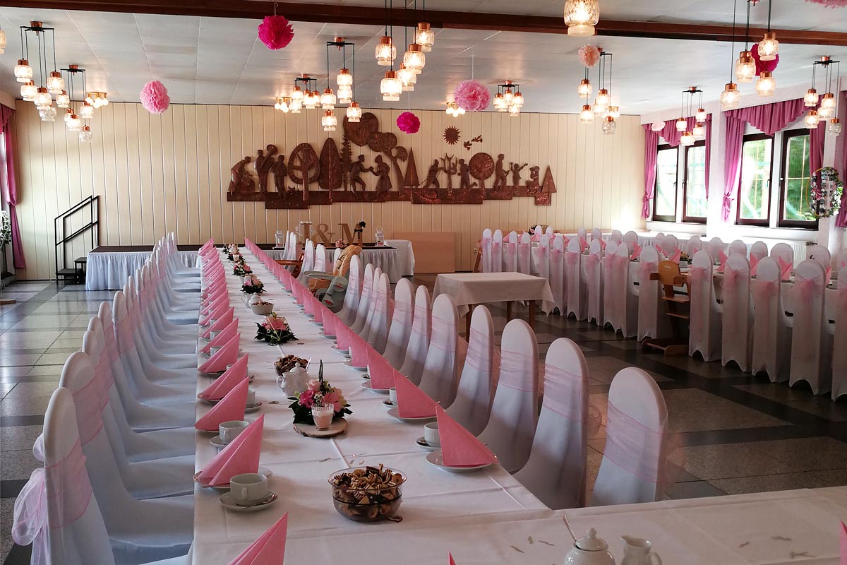 Unser geräumiger Saal bietet Platz für bis zu 180 Personen und ist für Ihre Feier mietbar. Gerne richten wir auch die Feier komplett für Sie aus. Auf Wunsch ist der Saal teilbar.