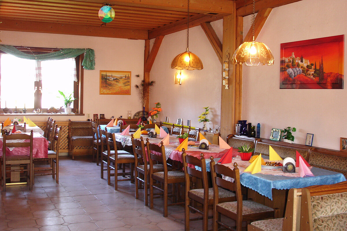 In den Gasträumen mit 50 bzw. 24 Plätzen (Nichtraucherbereich und separates Raucherlokal) können Sie sich mit gut bürgerlicher Thüringer Küche verwöhnen lassen. Auch Feierlichkeiten aller Art können hier veranstaltet werden.