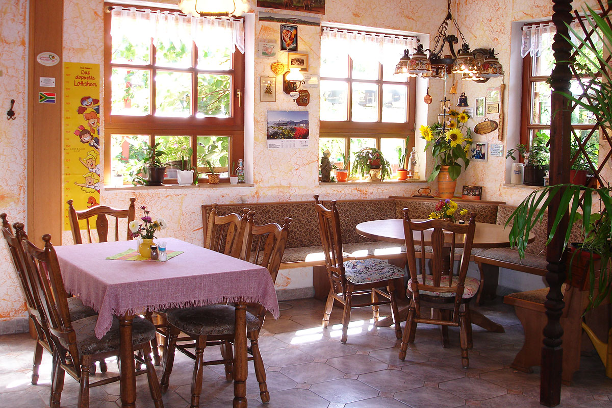 Erleben Sie das ländliche Ambiente und unsere pflanzenreiche Atmosphäre im Innen- und Außenbereich. Leckeres aus Topf und Pfanne nach Thüringer Regionalrezepten können Sie im Sommer auch in unserem Biergarten genießen.
