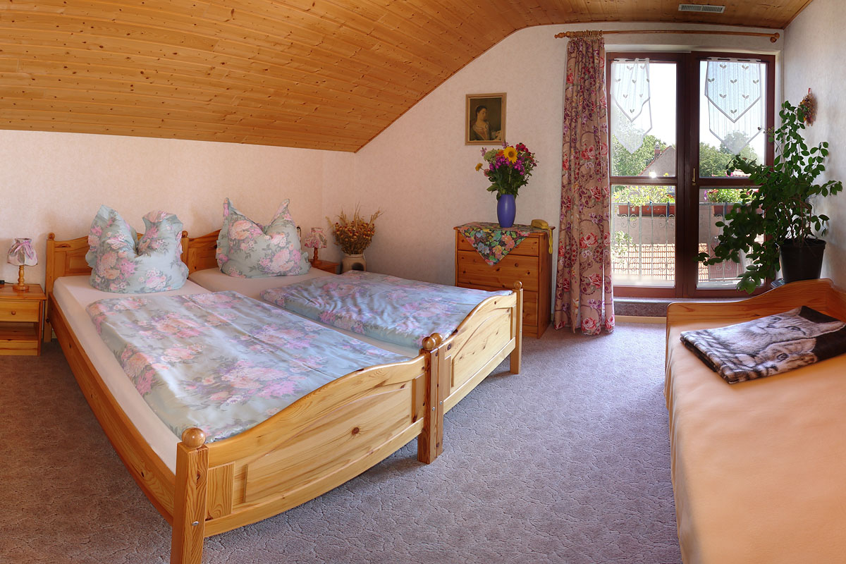 Unsere Pension bietet Ihnen 5 gemütlich eingerichtete Doppel- und Dreibettzimmer mit insgesamt 16 Betten, ausgestattet mit Dusche/WC, SAT-TV, Telefon, teilweise Balkon.