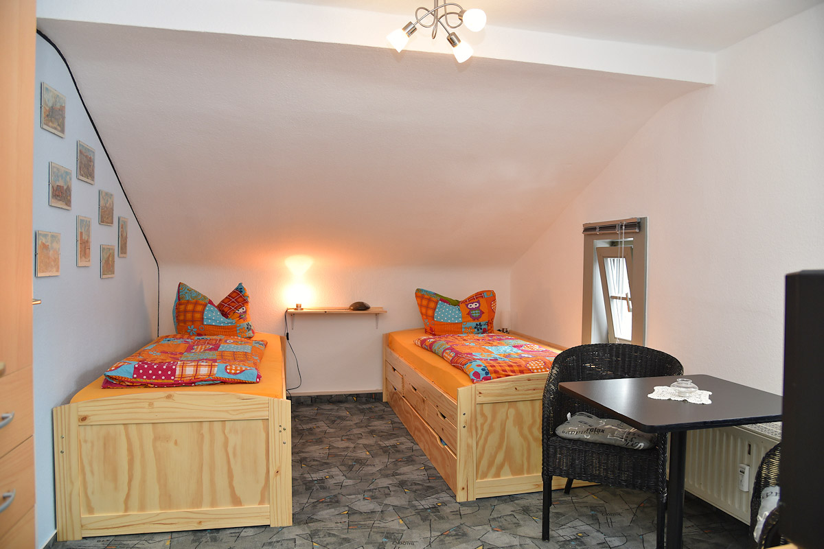 Über eine separaten Eingang erreichen Sie unsere beiden Gästezimmer im Obergeschoss. Das Doppel- und Einzelzimmer verfügen jeweils über einen SAT-TV sowie Dusche/WC. Auf Wunsch können sie in der Gaststätte frühstücken.