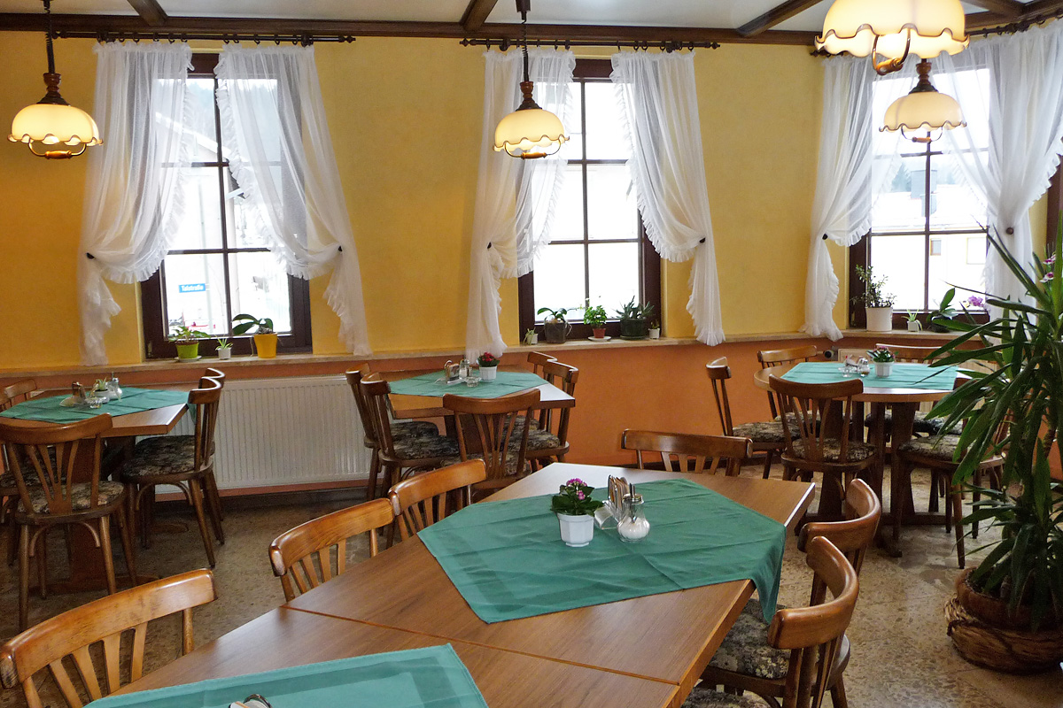 Mit 110 Plätzen verteilt auf 3 Gasträume können wir Ihre nächste Familienfeier, Vereins- oder Gruppentreffen gestalten und / oder uns auch als Ziel empfehlen für Wander-, Motorrad- und Reisegruppen. Entspannen Sie bei Kaffee und Kuchen oder unseren hausgemachten Thüringischen Gerichten, wie z.B. verschiedene Braten- und Wildgerichte mit Thüringer Klößen oder Schnitzelvariationen mit Gemüse der jeweiligen Saison. Als Bier vom Fass erhalten Sie bei uns das beliebte Apoldaer Bier.