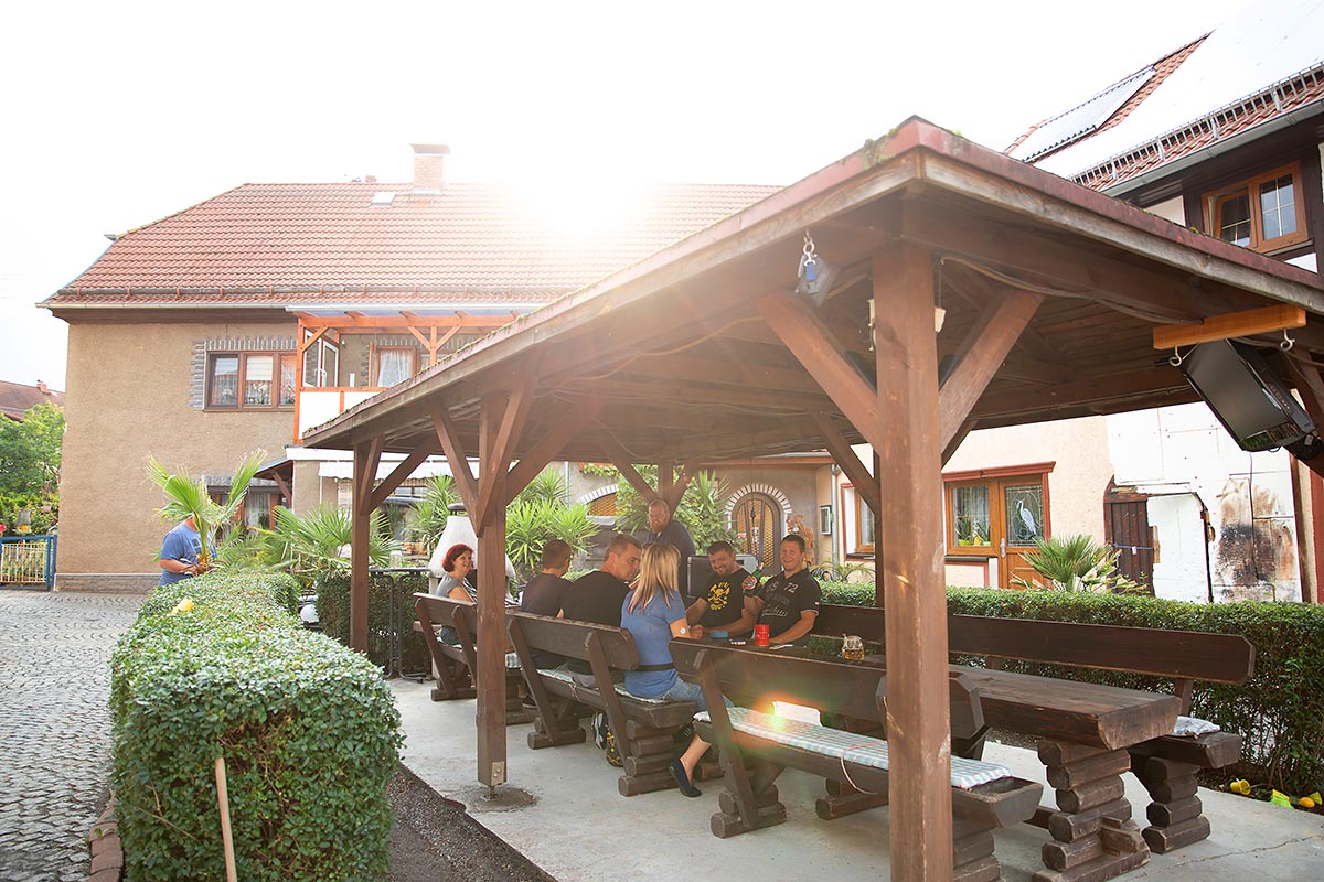 Am Morgen erwartet Sie ein leckeres Frühstücksbuffet unter anderem mit hausschlachtener Wurst. Unser kleiner überdachter Biergarten lädt an warmen Tag ebenfalls zum Verweilen ein.