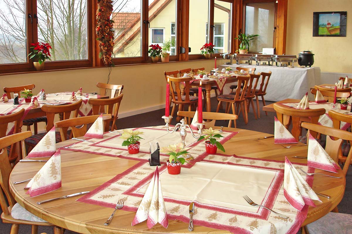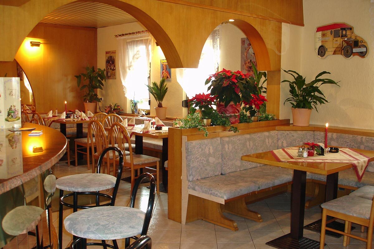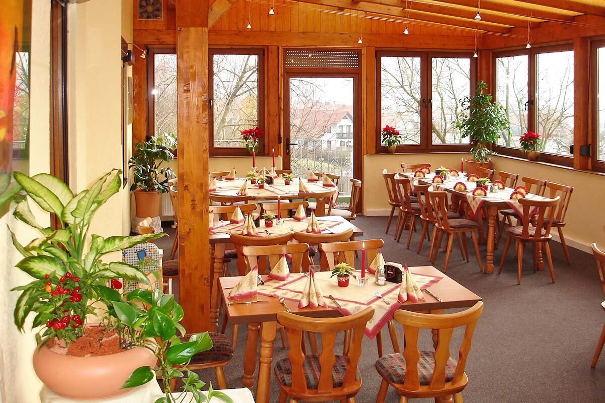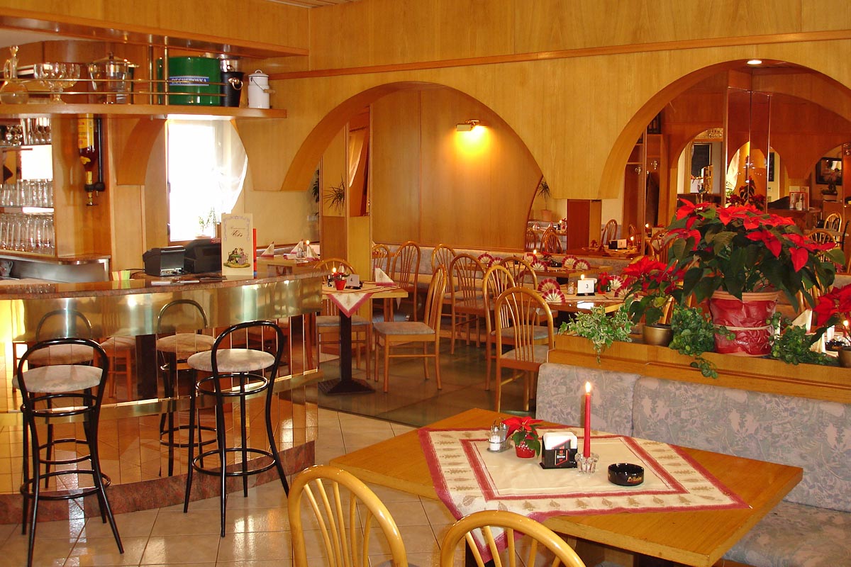 Eine gemütliche Gaststube mit ca. 60 Plätzen sowie ein Wintergarten mit 40 Plätzen laden ganzjährig zum Verweilen ein. Unsere gutbürgerliche Küche bietet durchgängig warme und kalte Speisen sowie eine Auswahl an Kuchen und Eisbechern.