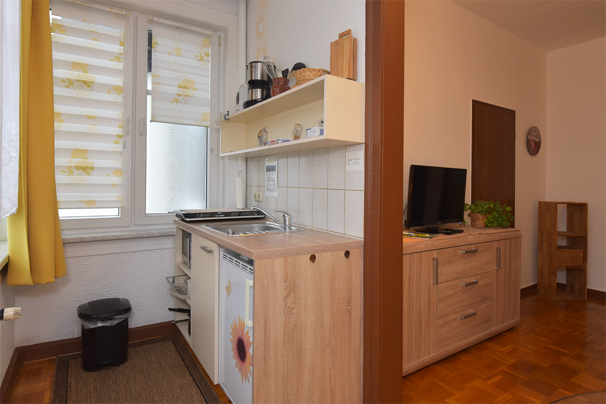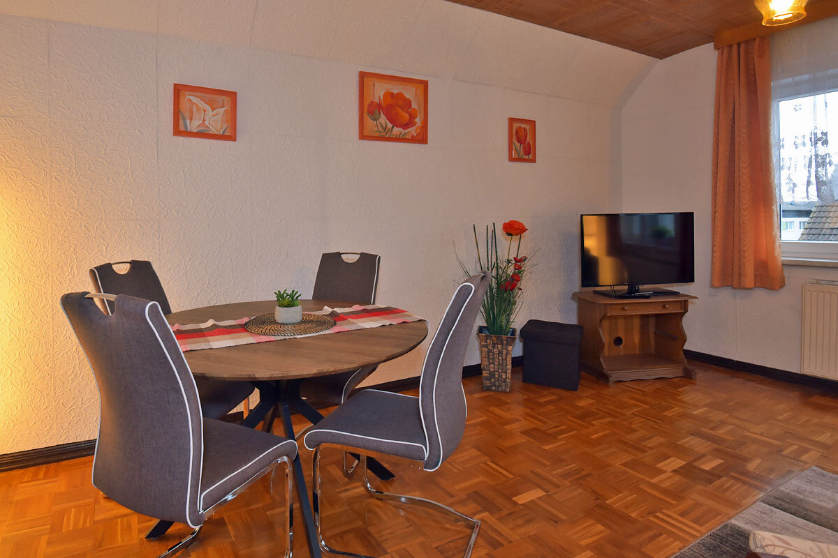 Zur Ausstattung gehören getrenntes Wohn- und Schlafzimmer ebenso wie Dusche / WC, Kabel-TV, Bettwäsche und Handtücher. Kostenfreies WLAN ist selbstverständlich auch vorhanden.