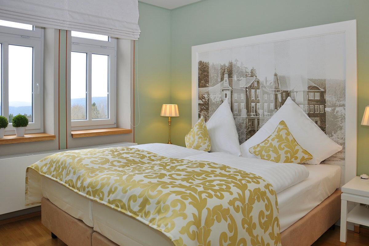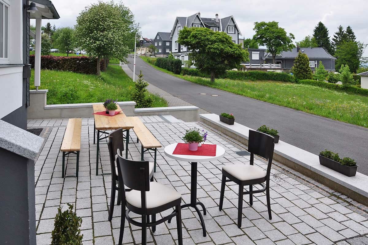 Die Appartements und Studios für jeweils 2 bis 4 Personen in den Obergeschossen sind komfortabel ausgestattet und bieten einen grandiosen Blick über den Thüringer Wald.