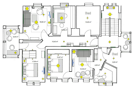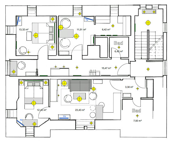 Die unterschiedlichen Räume sind durch Türen abgegrenzt - dieses ist besonders für Familien mit Kindern sehr geeignet. Alle Wohnungen sind Nichtraucherappartements.