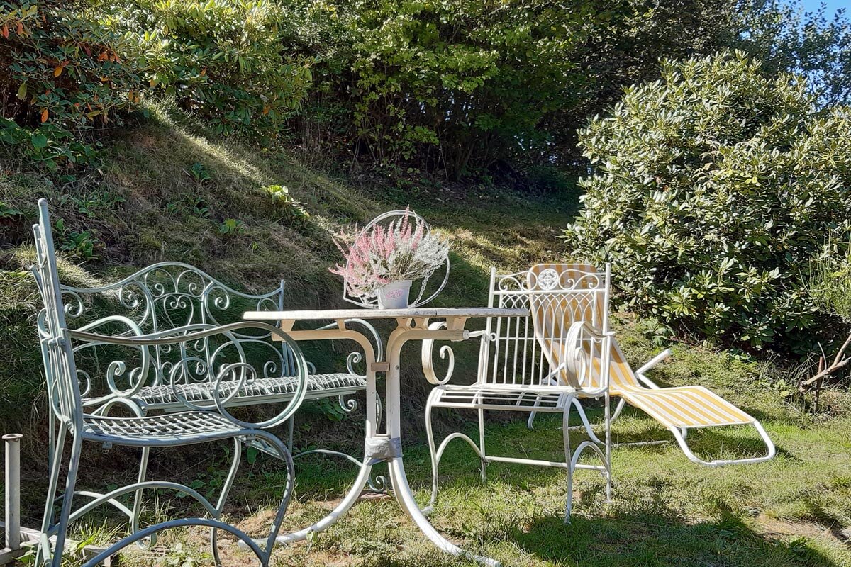 Des Weiteren gibt es auf dem Grundstück eine Bergterrasse mit Gartenmöbeln/Liegestuhl sowie toller Aussicht über Gießübel.