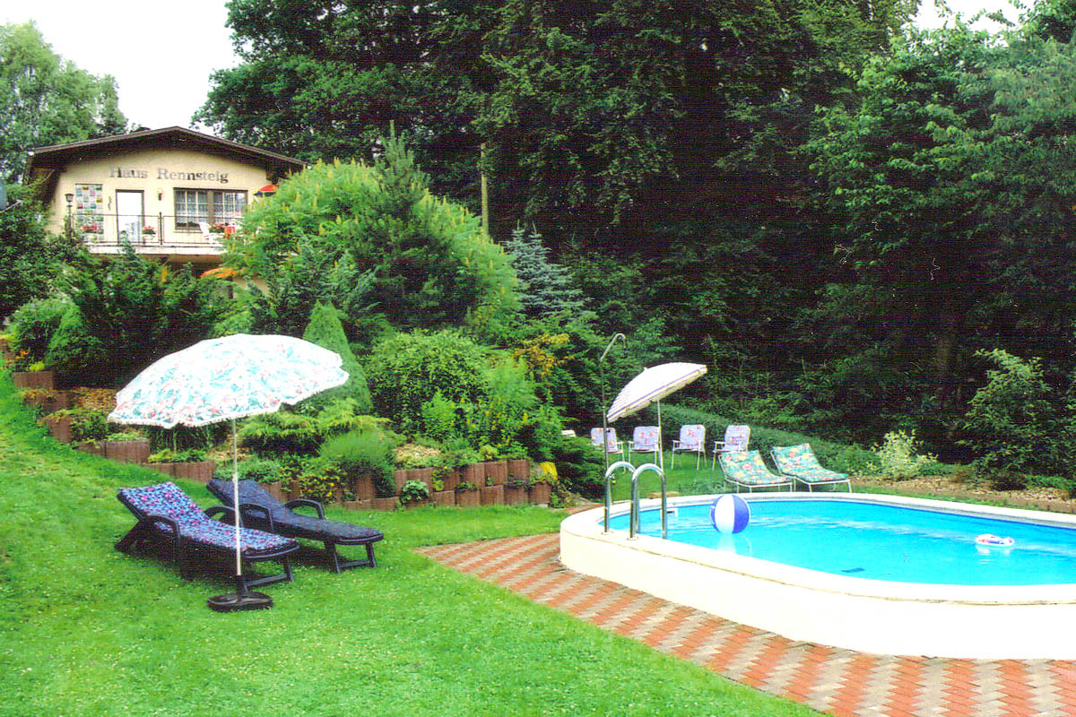 Im Sommer steht Ihnen im Garten ein Swimmingpool mit sichtgeschützter Liegewiese, Liegen und Sonnenschirm zur Verfügung. Tischtennisplatte auf Anfrage/gegen Gebühr