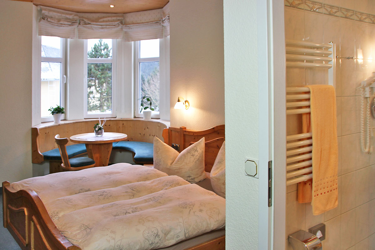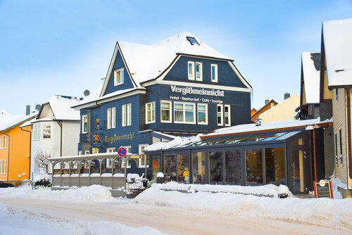 Auf 825 Meter Höhe auf dem Kamm des Thüringer Waldes liegt in der Ortsmitte von Oberhof unser kleines Hotel Vergissmeinnicht.