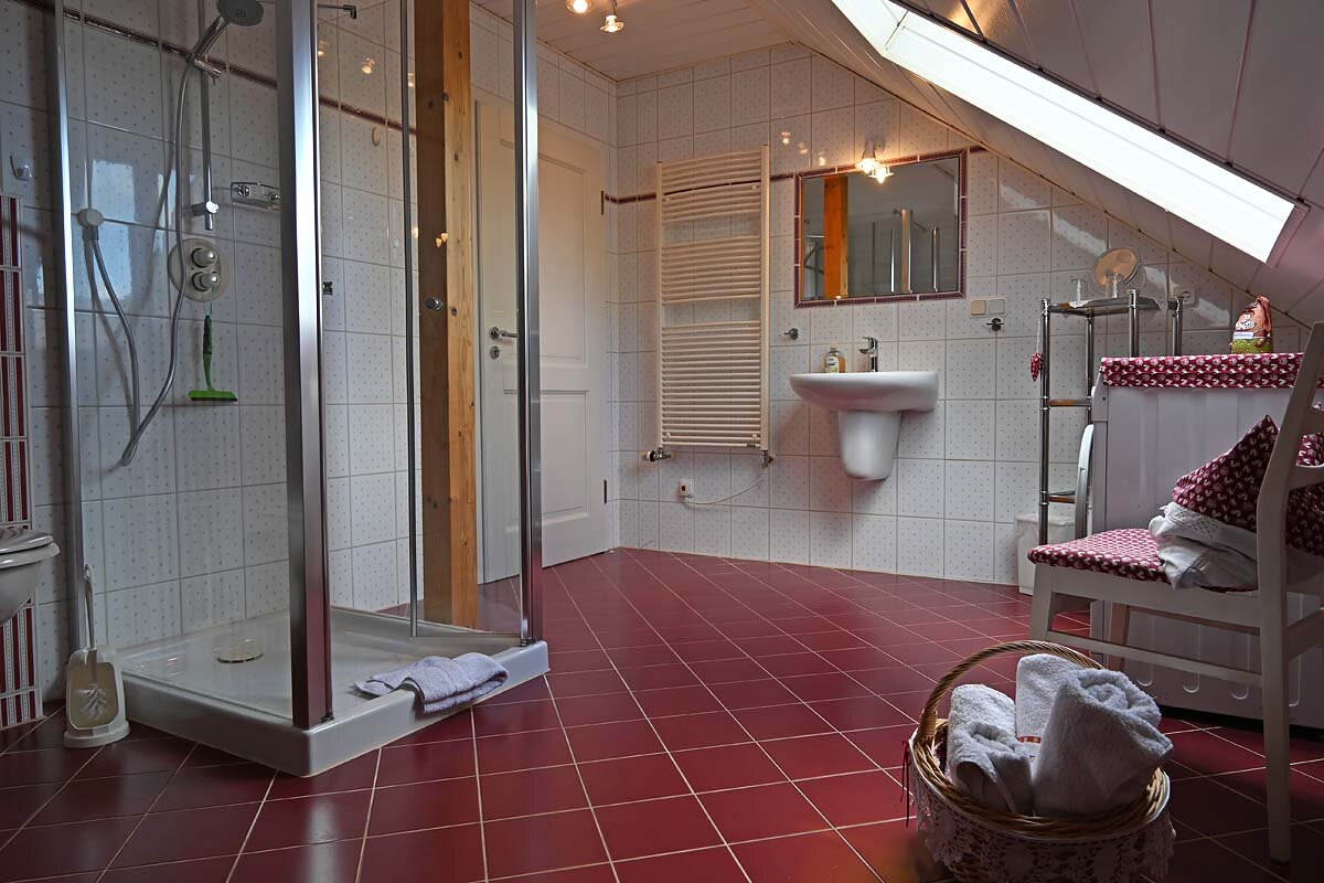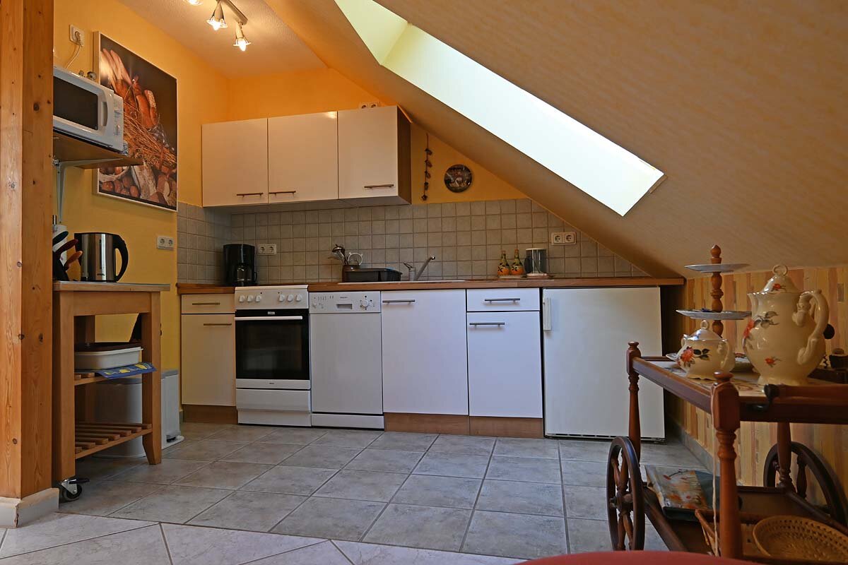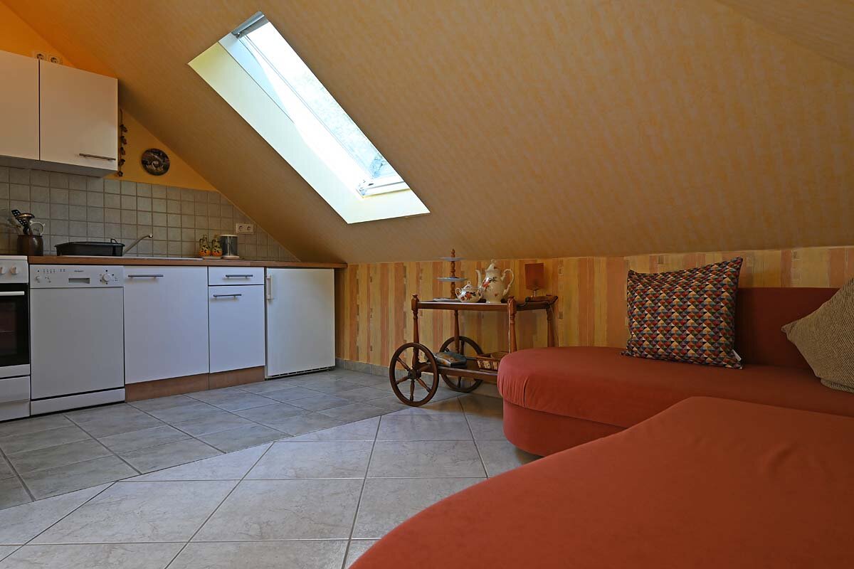 Unsere geräumige Ferienwohnung 1 (60 qm) für 2 Personen (2 Aufbettg. mögl.), ist mit jeglichem Komfort ausgestattet und bietet Ihnen ein ideales Zuhause in Ihren wohlverdienten Ferien. Die Wohnung verfügt über einen separaten Eingang, für ein ideales Raumklima sorgen Fußbodenheizung und komplett zu öffnende Dachfenster. Ein Carport für die Unterstellung Ihres PKW gehört ebenso zur Ausstattung.