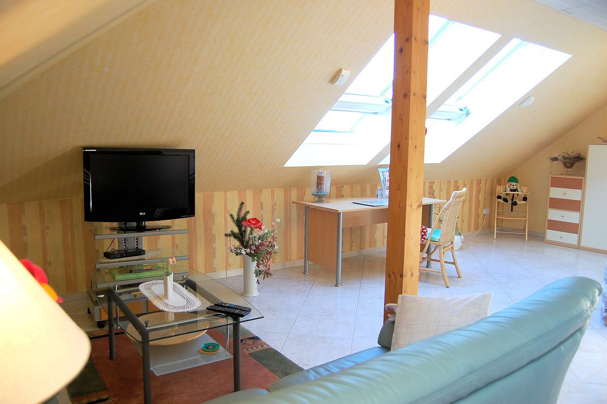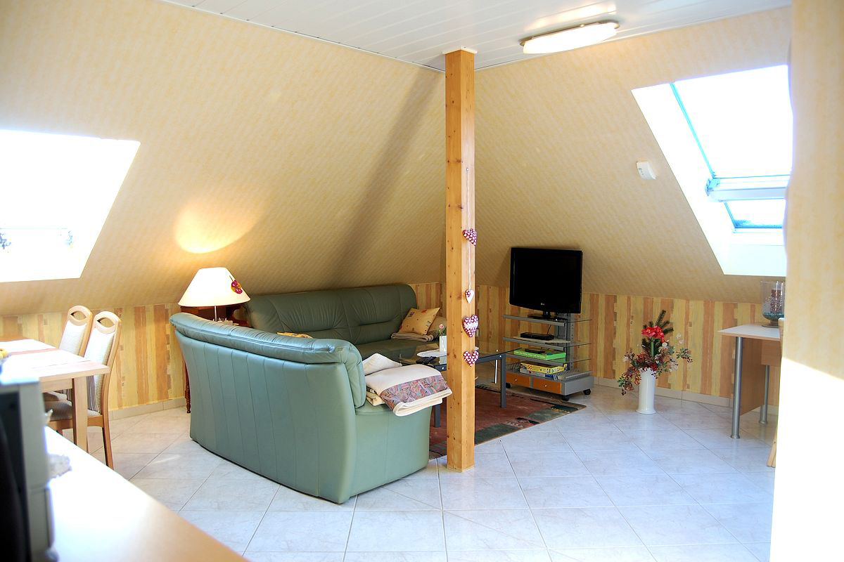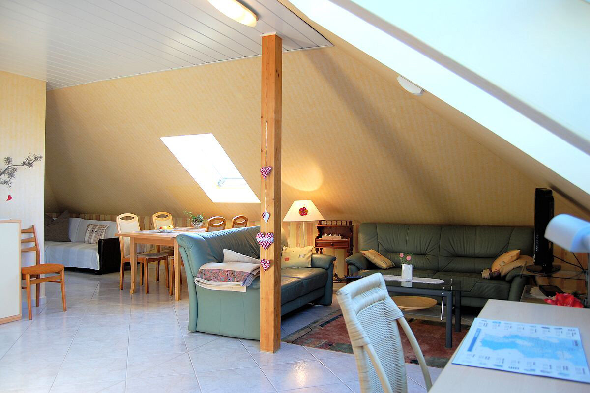 Das Wohnzimmer mit einer gemütlichen Sofaecke (Aufbettung mögl.), Sat-TV, Radio, Gesellschaftsspielen und Schreibtisch bietet Ihnen nicht nur an Regentagen Entspannung pur.