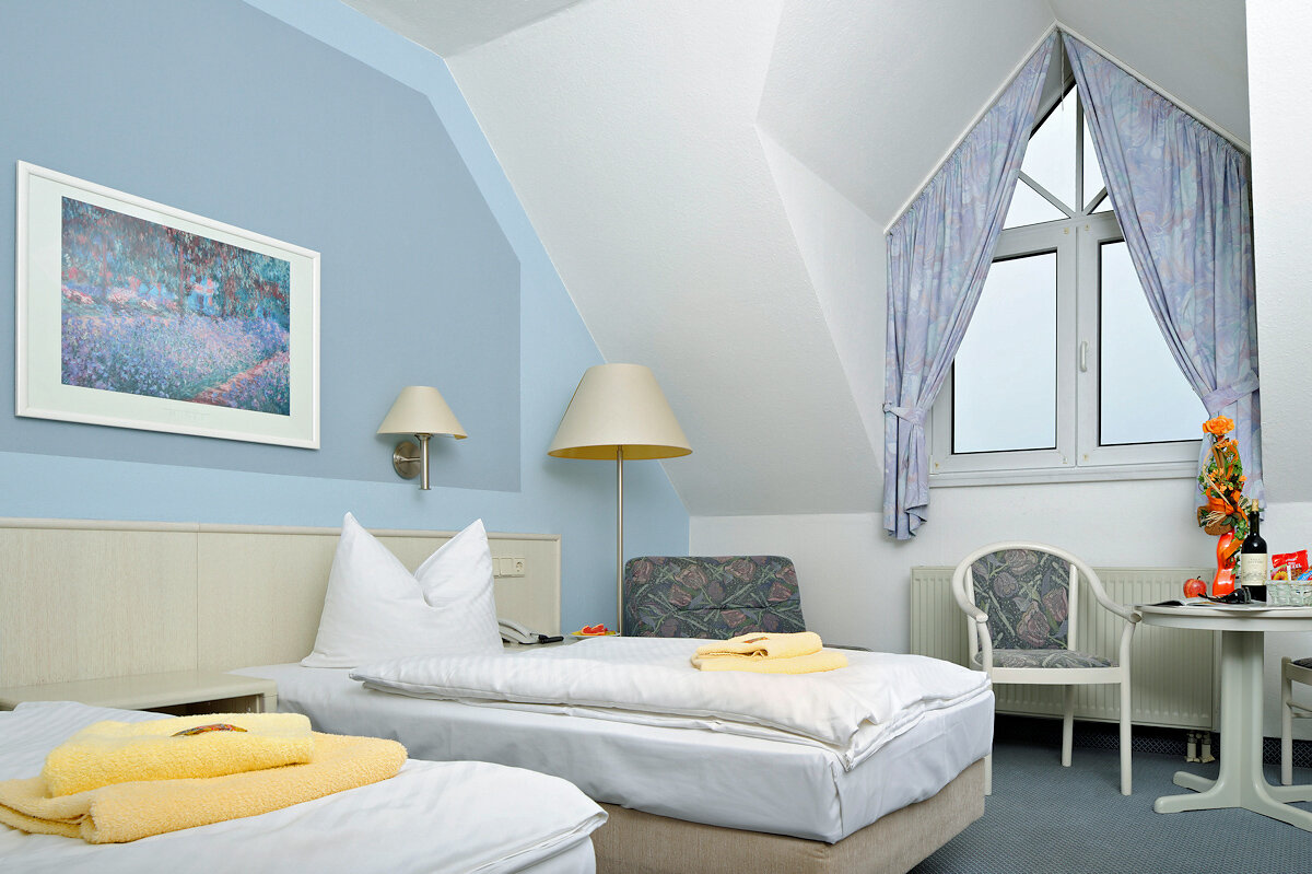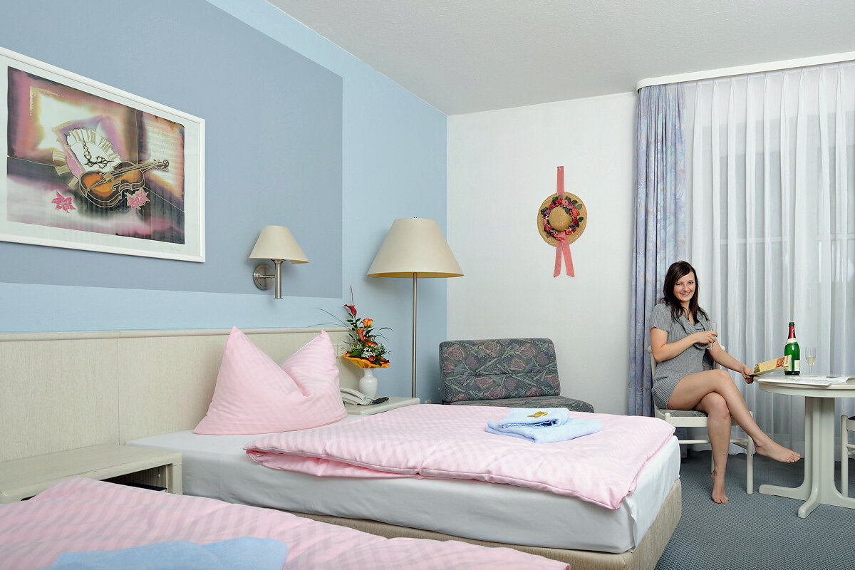 Unser familiengeführtes Hotel wurde nach modernen Gesichtspunkten ausgestattet. In unseren hellen, geschmackvoll und wohnlich eingerichteten Zimmern finden Sie alles für einen angenehmen und entspannten Aufenthalt. Alle Zimmer sind mit Dusche/WC, Farb-TV und Telefon ausgestattet. Unseren Gästen stehen ausreichend eigene Parkplätze zur Verfügung.
