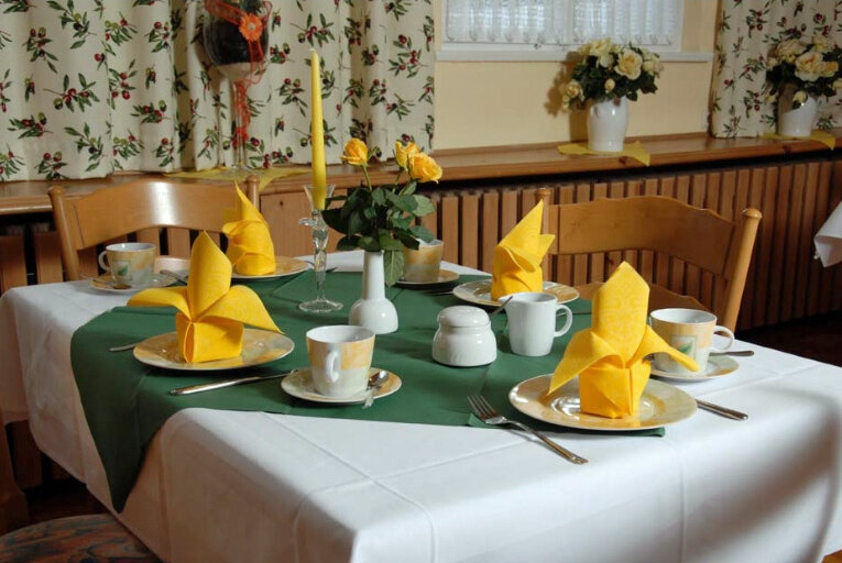 In unserem gemütlichen "Fröbelstübchen" servieren wir Ihnen ein reichhaltiges Frühstücksbuffet.