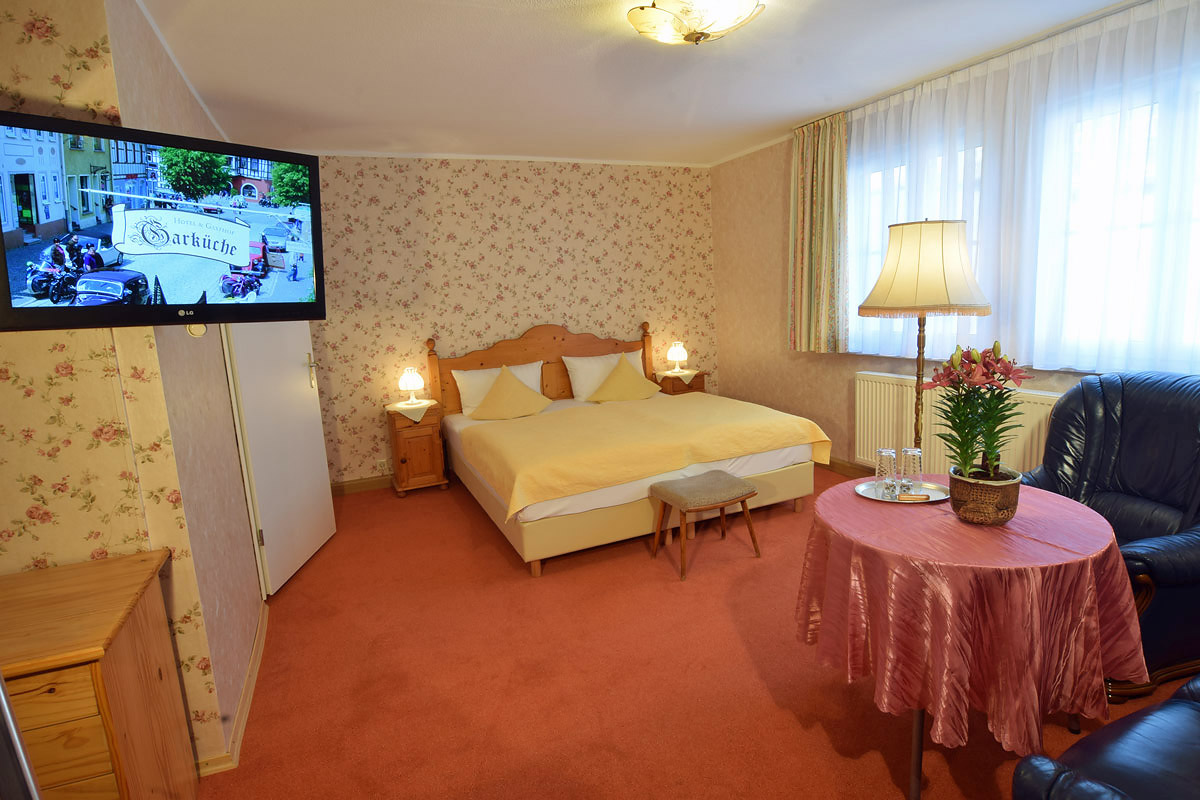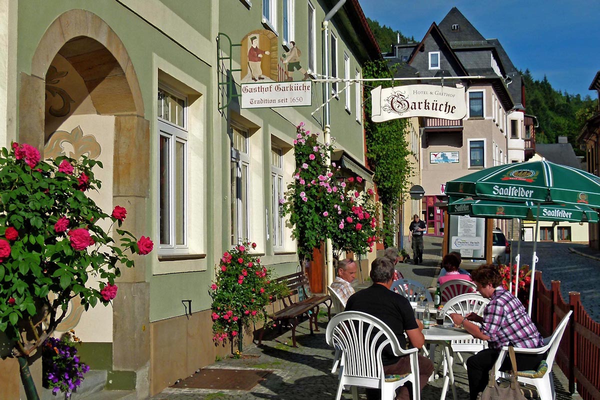 Später war der Name "Garküche" verpönt. Überall ließen sich die Garküchen umbenennen in attraktivere Namen wie "Zum Goldenen Schwan" oder "Leipziger Hof". Die "Garküche" in Leutenberg bleibt ihrem Namen treu, da sich mit ihm die über 350-jährige Tradition der Familie Schmidt in diesem Haus verbindet.