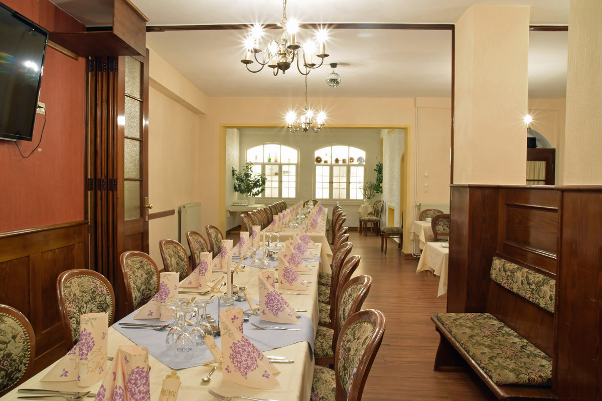 Die neu eingerichtete Gaststube verfügt über 35 Plätze und das im historischen Stil gestaltete Nebenzimmer hat eine Kapazität von 55 Sitzplätzen.