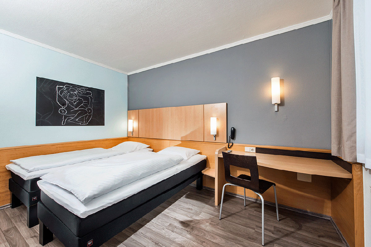Wir bieten Ihnen 100 modern eingerichtete Zimmer. Alle Zimmer verfügen über Sat-TV, einen großen Schreibtisch sowie ein Badezimmer (Dusche/WC).