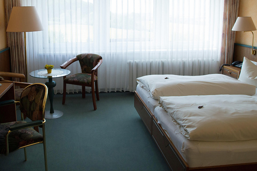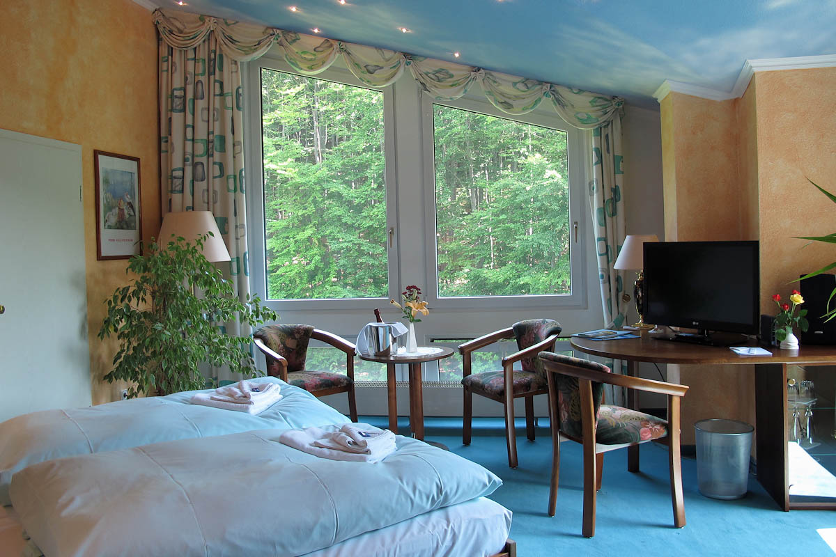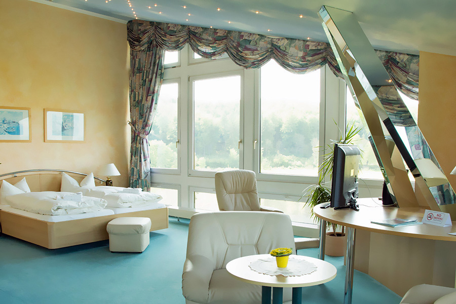 Alle 12 Einzelzimmer, 29 Doppelzimmer, 2 Suiten und 10 Finnhütten sind komfortabel ausgestattet mit Bad/Dusche/WC, Fön, Schminkspiegel, ISDN-Telefon, Internet, Sat-TV, DVD-Spieler, Radiowecker und Minibar.