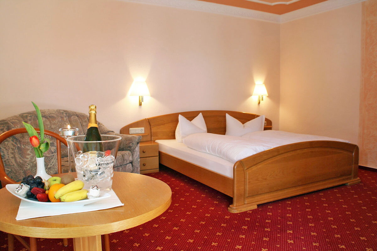 Unsere 20 komfortablen Doppelbettzimmer werden allen Ansprüchen eines modernen Reisenden gerecht. Sie verfügen über Bad oder Dusche, WC, Sat-TV, Telefon, Balkon, und teilweise Minibar. Fast alle Zimmer sind mit dem Lift bequem erreichbar.