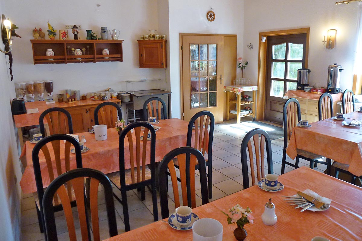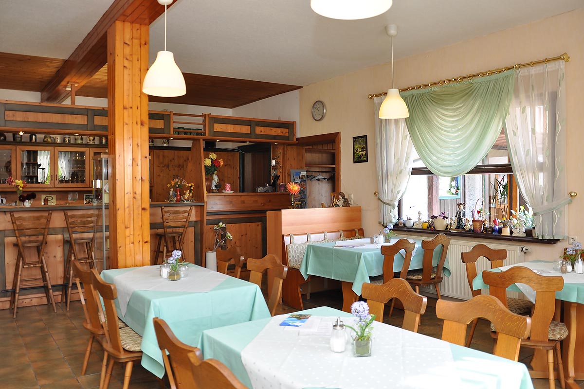 Lassen Sie sich von unserer Küche mit einer reichhaltigen Auswahl an Thüringer Spezialitäten (z. B. Wildgerichte, selbstgebackene Kuchen) verwöhnen.