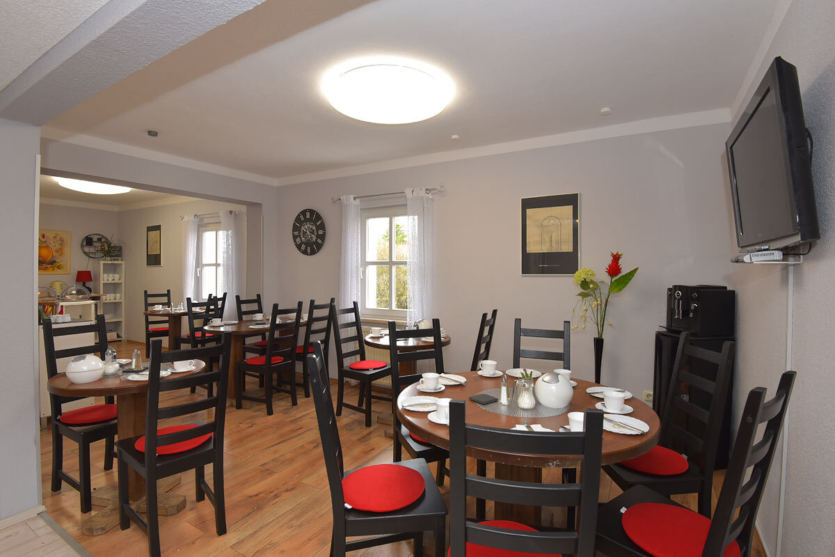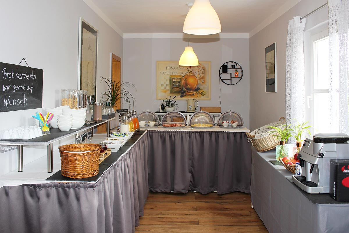 In unserem Frühstücks- und Aufenthaltsraum haben wir jeden Morgen ein Frühstücksbuffet für Sie zubereitet, an dem Sie von 6:30 Uhr bis 10:00 Uhr Ihr Frühstück einnehmen können. Nach Absprache können Sie natürlich auch später frühstücken.