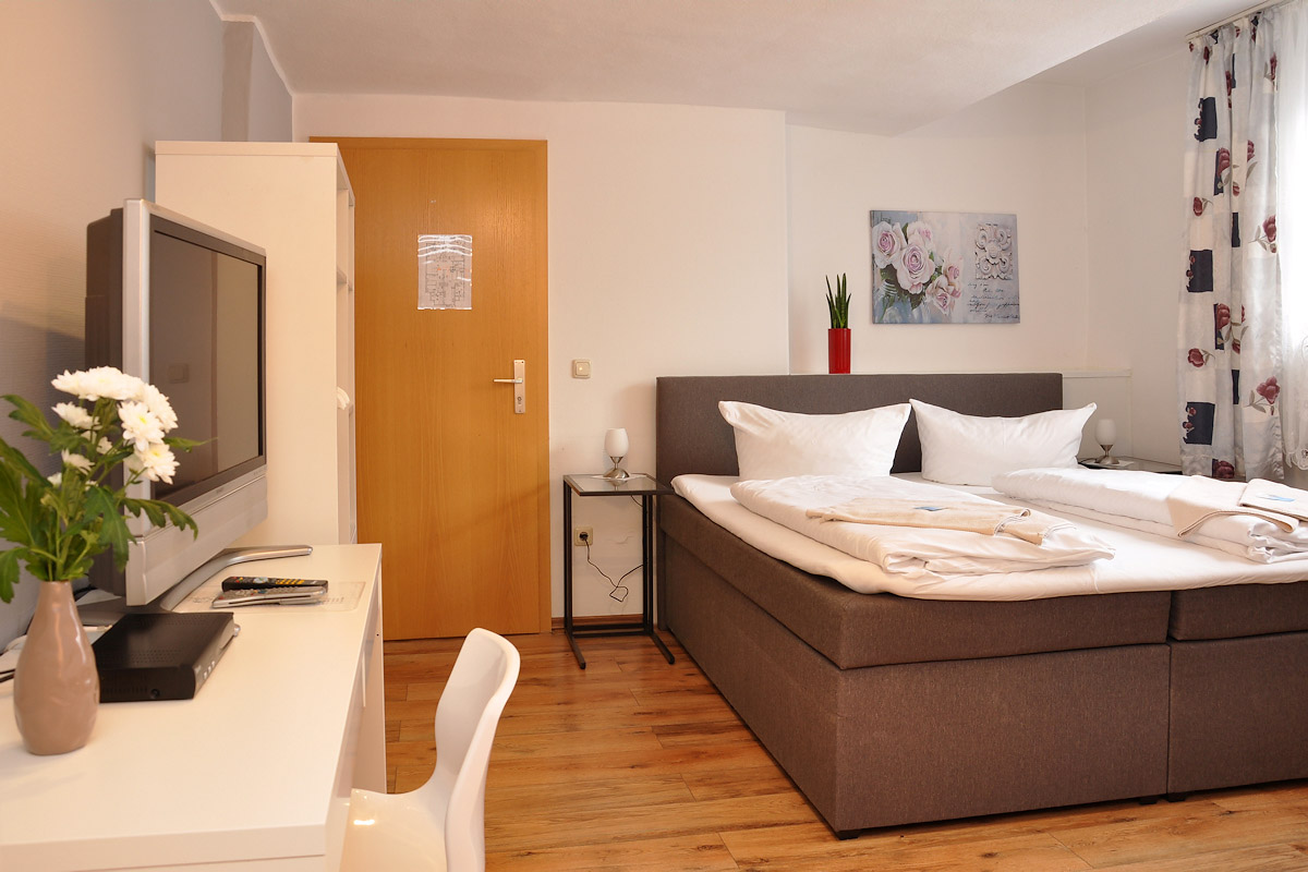 Alle Zimmer sind komfortabel mit Dusche, WC, Sat-TV und Radiowecker ausgestattet. WLAN ist kostenfrei vorhanden.