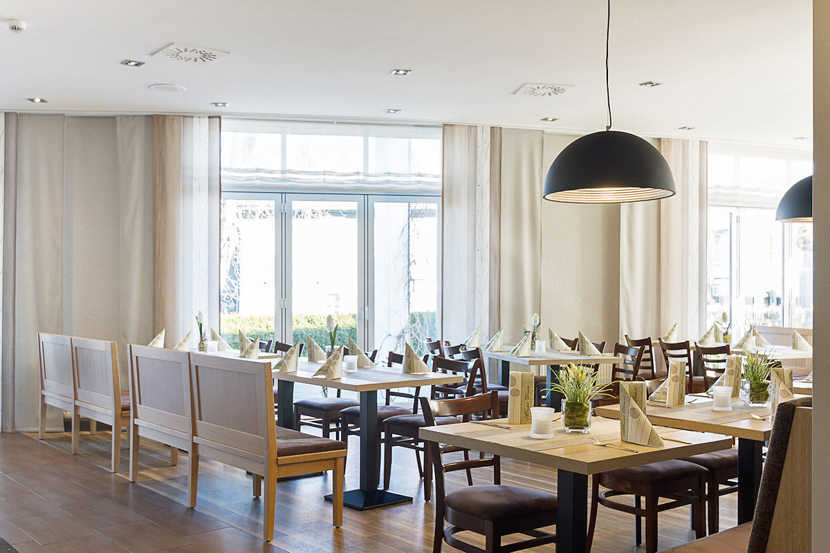 In idyllischer Umgebung und einem freundlichen Ambiente lädt Sie unser Hotelrestaurant bereits zum Frühstück ein. Die abwechslungsreiche Speisekarte bietet für jeden Gaumen etwas, Spezialität ist natürlich die Thüringer Küche. Eine große Gartenterrasse, direkt am Restaurant gelegen, lädt an schönen Sommertagen zum Essen und Plaudern ein.