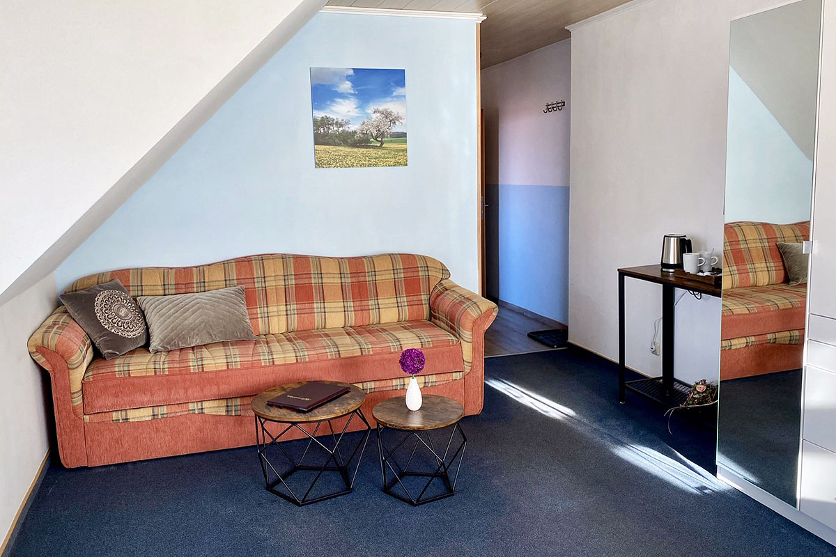 Unsere Gästezimmer ... sind über ein separates Treppenhaus zu erreichen. Diese sind großzügig und gemütlich mit Dusche/WC und Sat-TV eingerichtet und ermöglichen auch einen längeren erholsamen Aufenthalt. Ihr Frühstück halten wir für Sie im Gastraum in unserem Wirtshaus bereit.