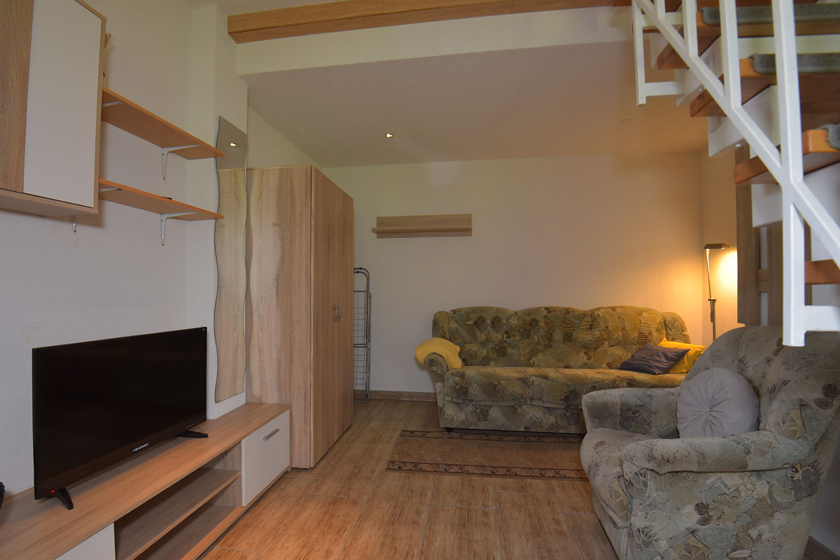 Die Wohnungen sind zweckmäßig ausgestattet und bieten Ihnen Platz für jeweils bis zu 5 Personen. Zum Teil sind mehrere Schlafzimmern mit Einzelbetten vorhanden sowie Aufbettungsmöglichkeiten auf der Couch.