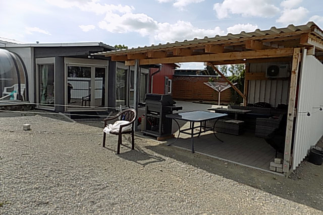 Zusätzlich gibt es einen Geschirrspülbereich, Mülltrennung und einen Gemeinschaftsbereich im Bungalow mit Fernseher, Heizung und Klimaanlage – ideal bei schlechtem Wetter.