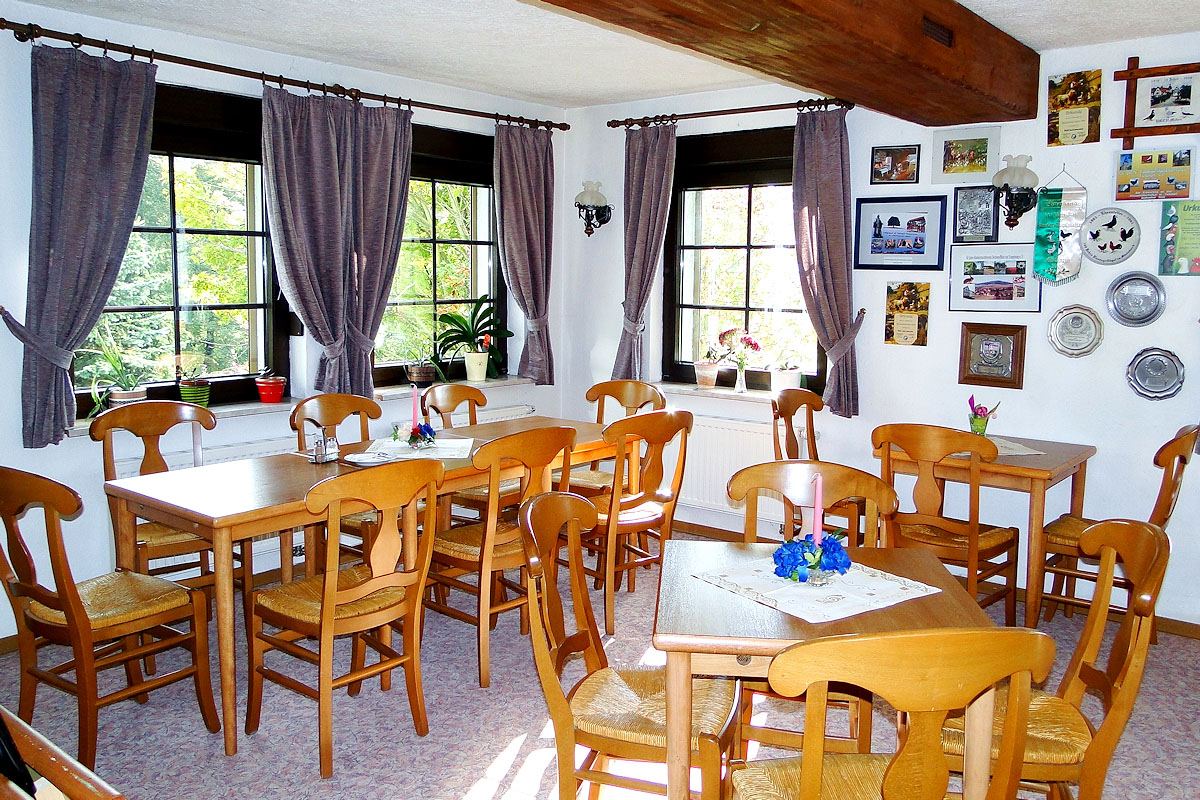 Unsere kleine Gaststätte (barrierefrei) im Haus, bietet Ihnen ein vielfältiges Angebot Thüringer Spezialitäten (Gaststätte im Haus).