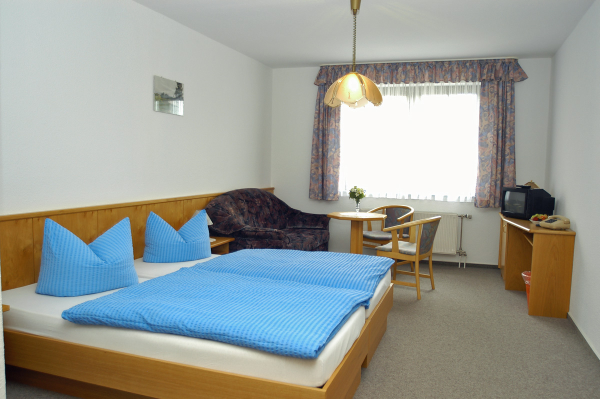 1991 wurde unser Landgasthof grundlegend renoviert, um unseren Gästen neben der schönen Landschaft und der guten Thüringer Küche auch gemütliche und komfortable Zimmer bieten zu können. Alle 10 Doppelzimmer haben DU/WC, TV, Telefon, W-LAN. Das Frühstück in Büfettform wird in einem separaten Frühstücksraum serviert.